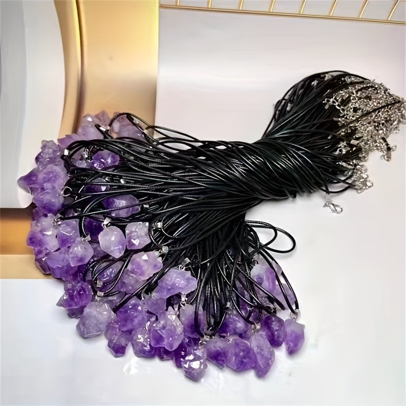 This natural raw stone amethyst pendant features an irregular shape and is perfect as a unique crystal necklace pendant. It makes a thoughtful gift for friends and loved ones.