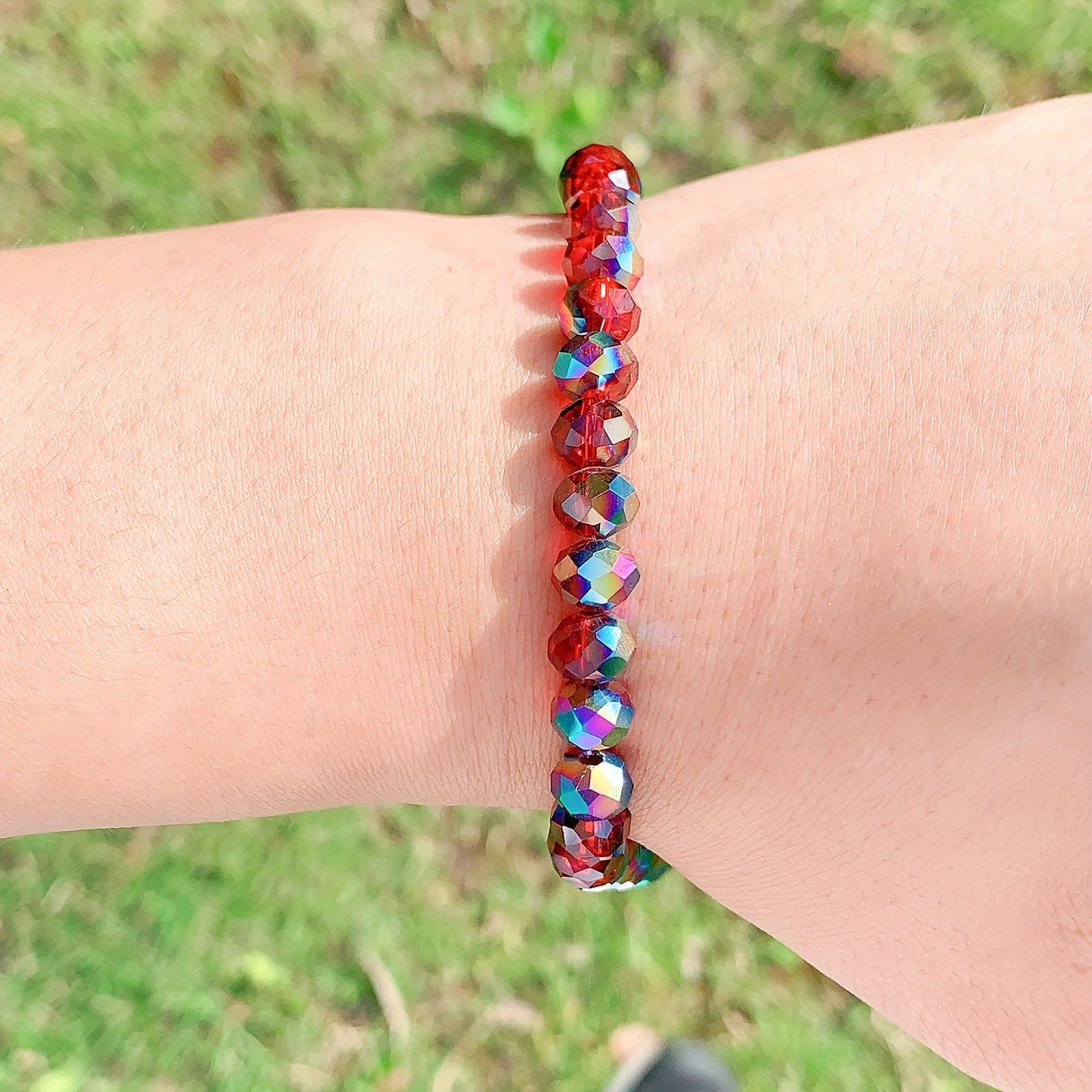 Create stunning jewelry pieces with these red crystal and multicolored glass beads. Perfect for DIY bracelets and accessories.