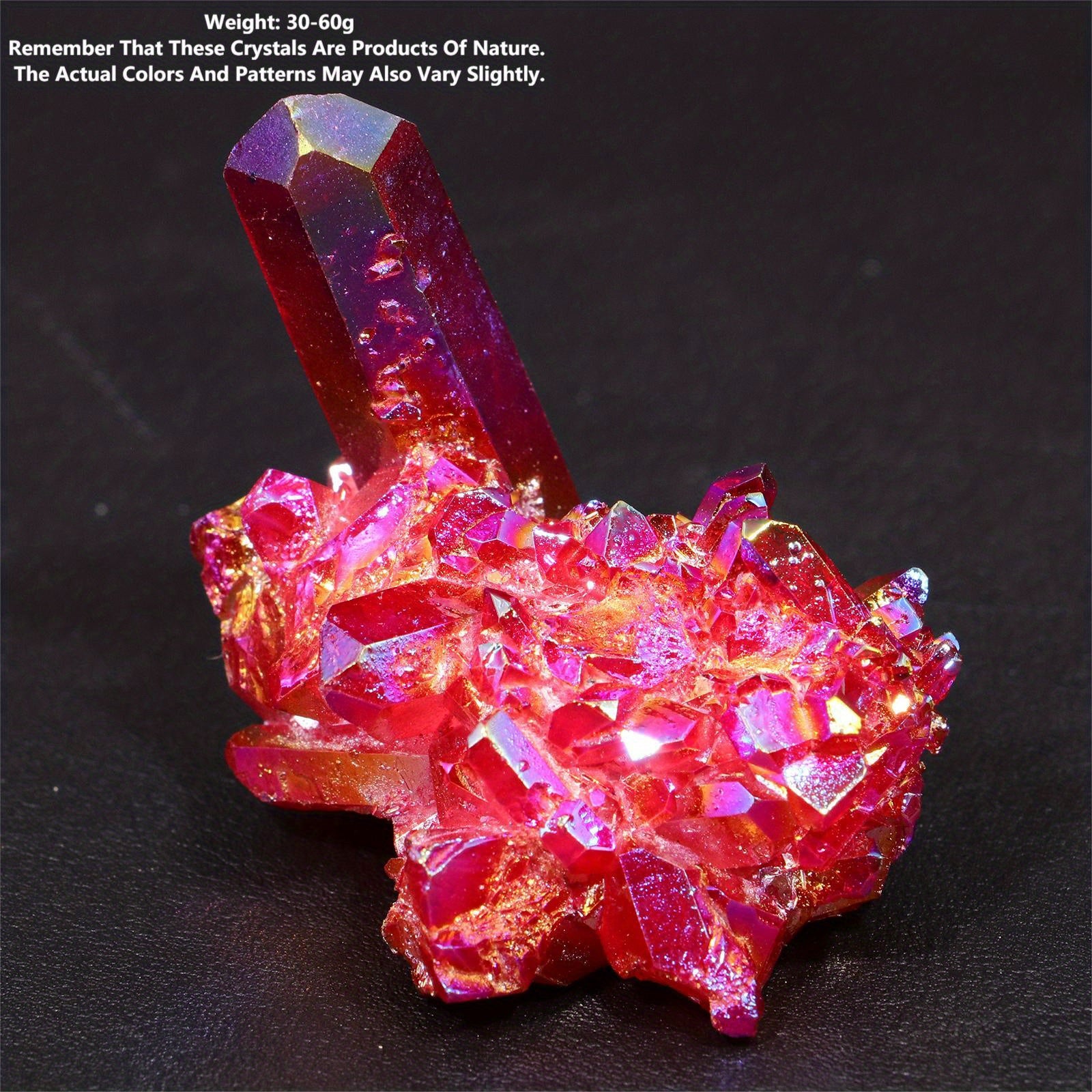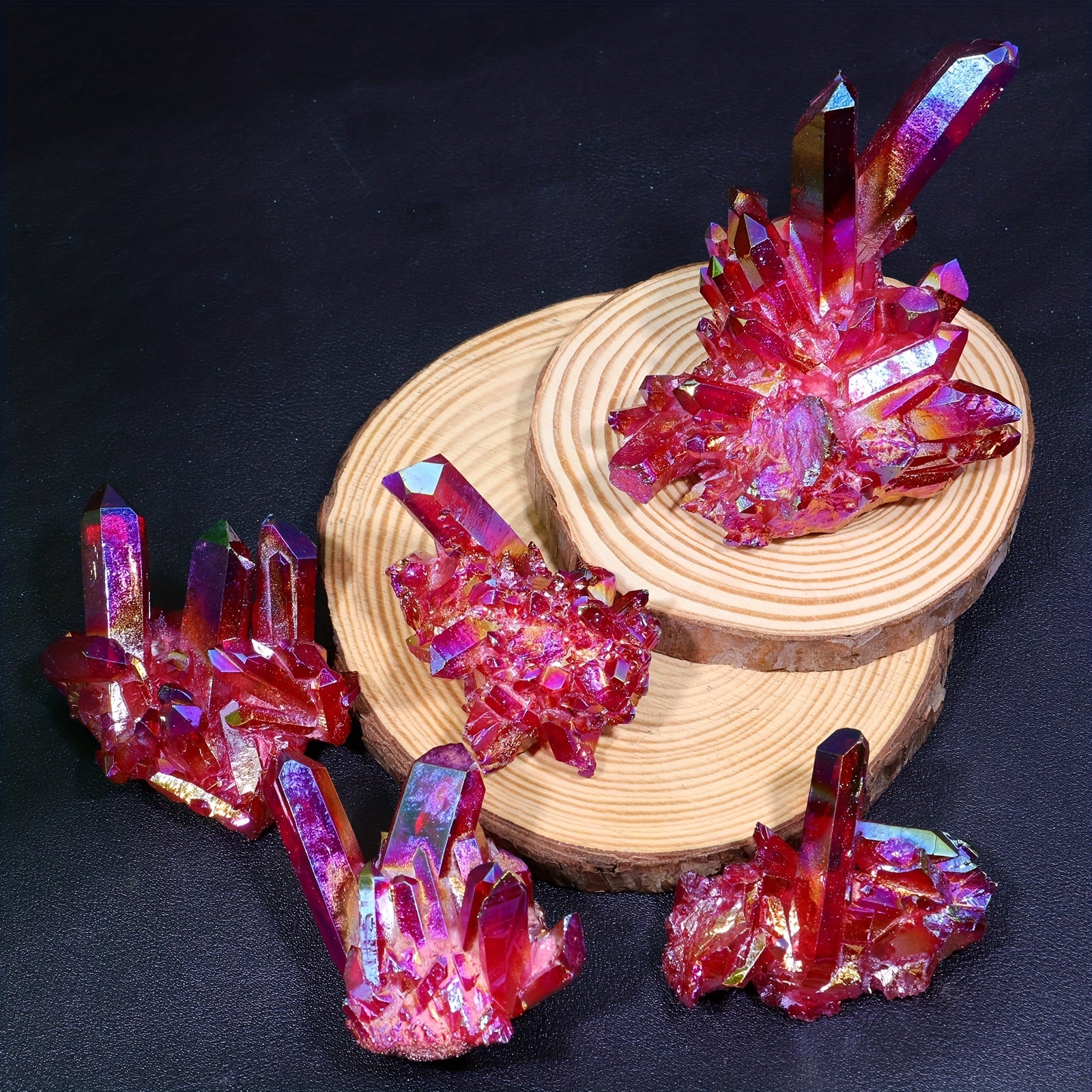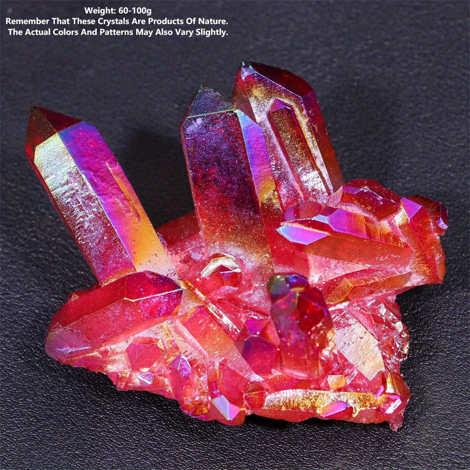 Red Titanium Rainbow Aura Lemurian Quartz Cluster Crystal Point