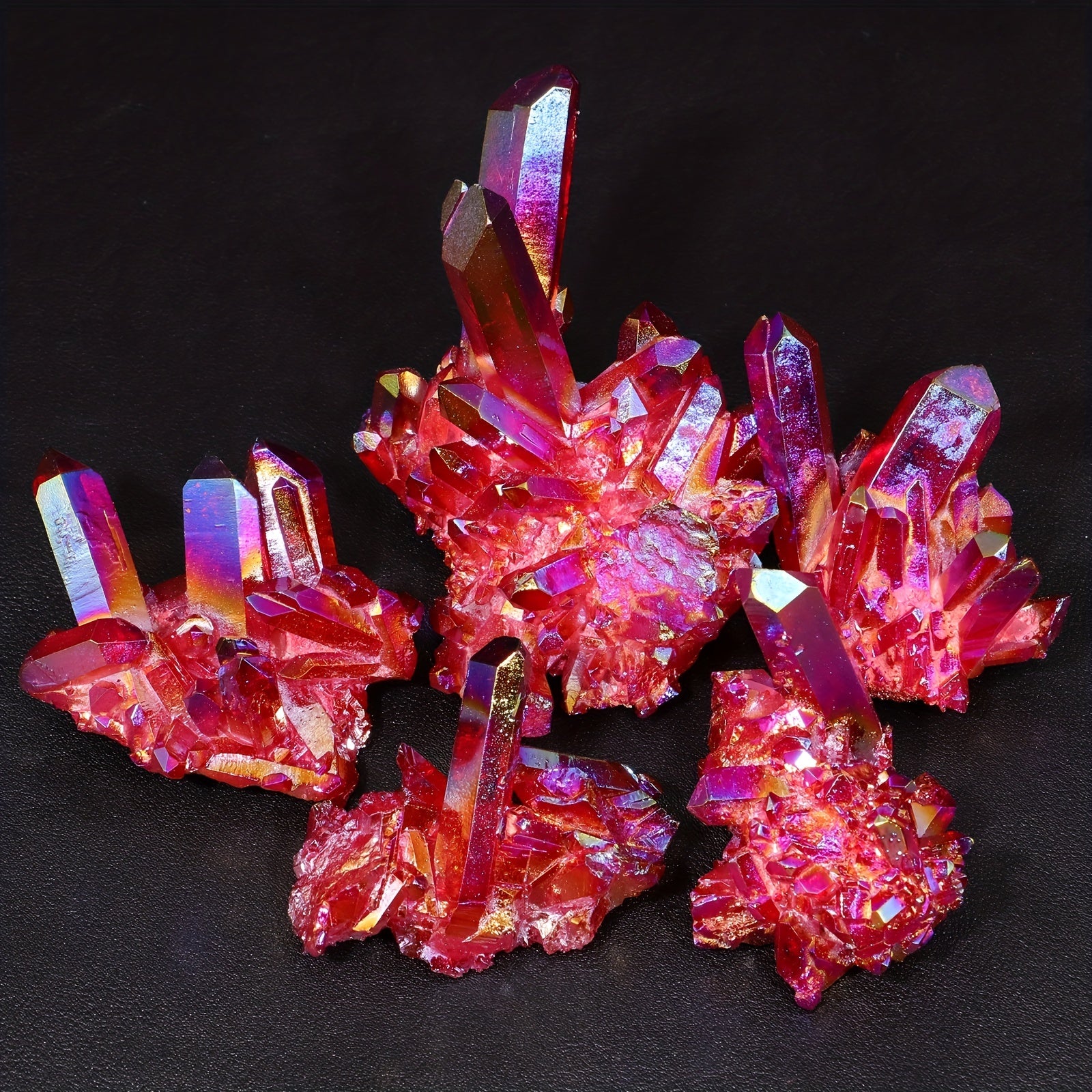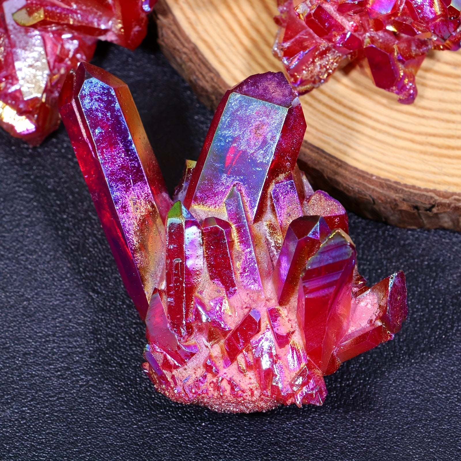 • Red titanium rainbow aura Lemurian Quartz cluster