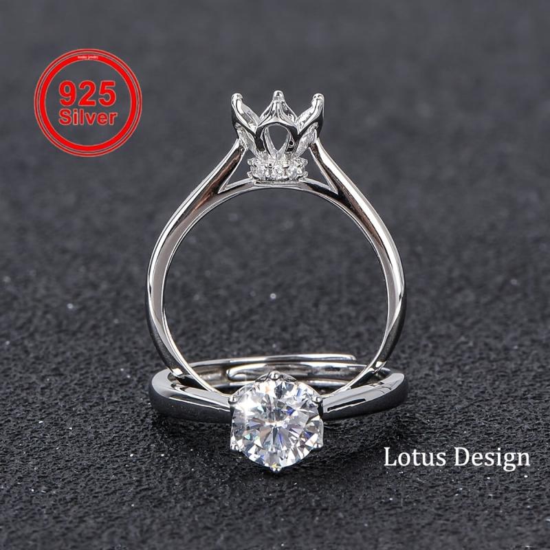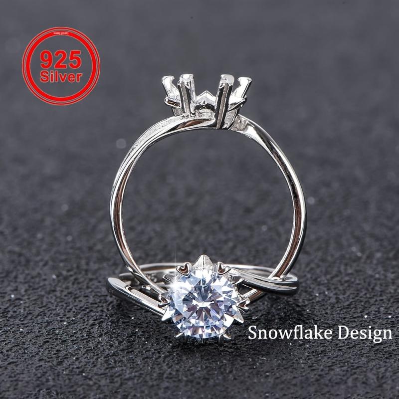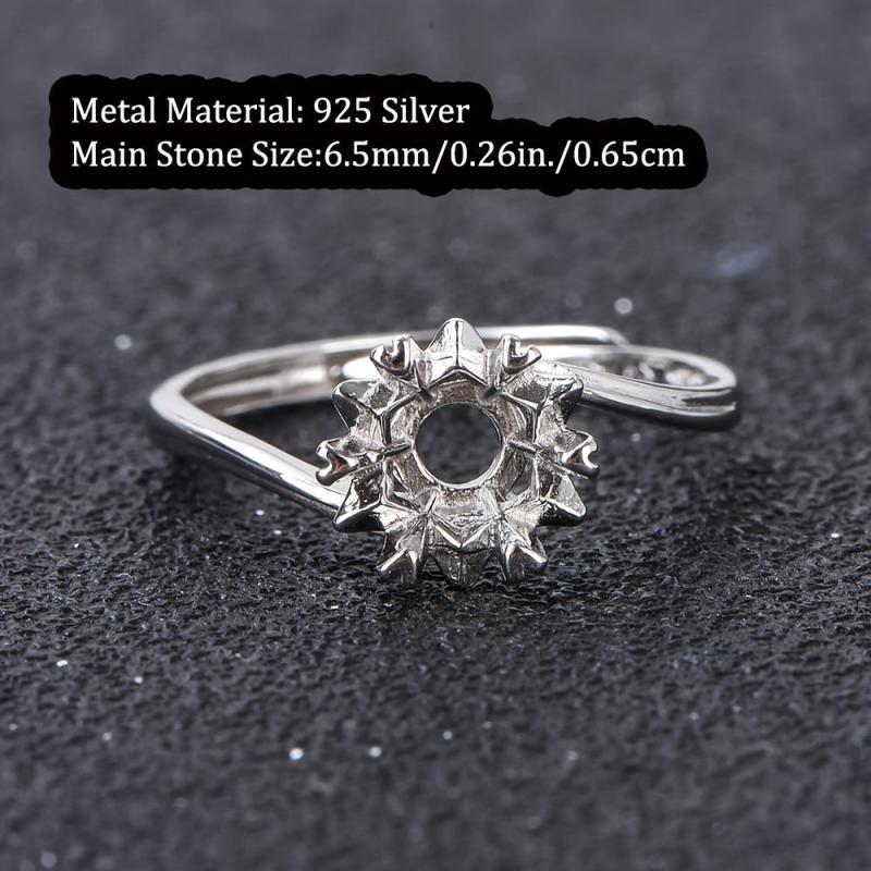 This 925 sterling silver ring setting is perfect for a 6.5mm, 1 carat stone. Create your own unique piece of jewelry with this blank ring in lotus, snowflake, and crown designs.