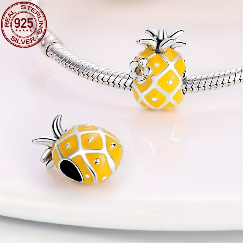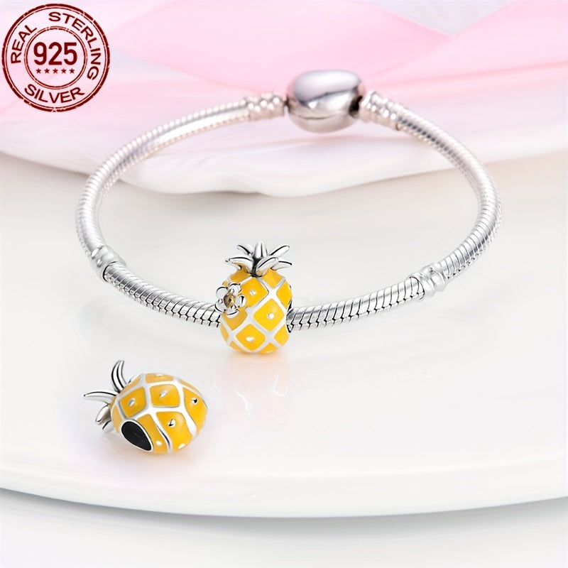 This bracelet features a charming pineapple charm made of genuine S925 sterling silver. Perfect for creating unique jewelry pieces and handcrafted gifts.