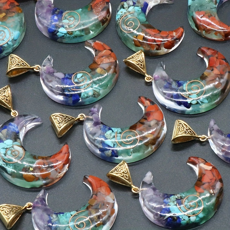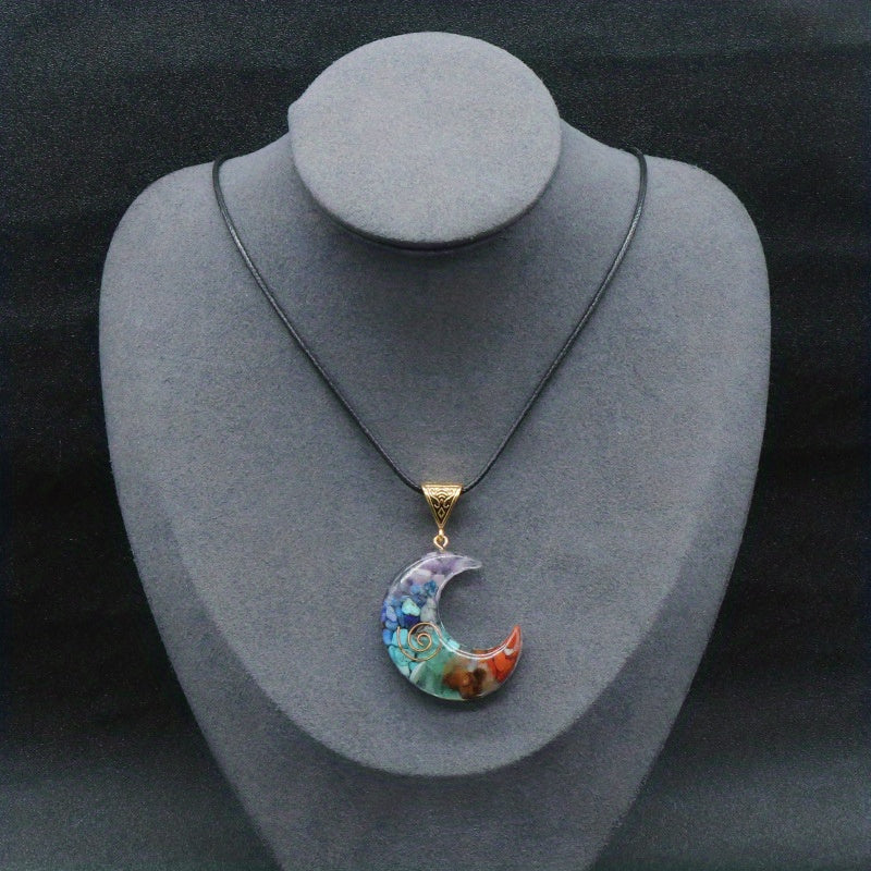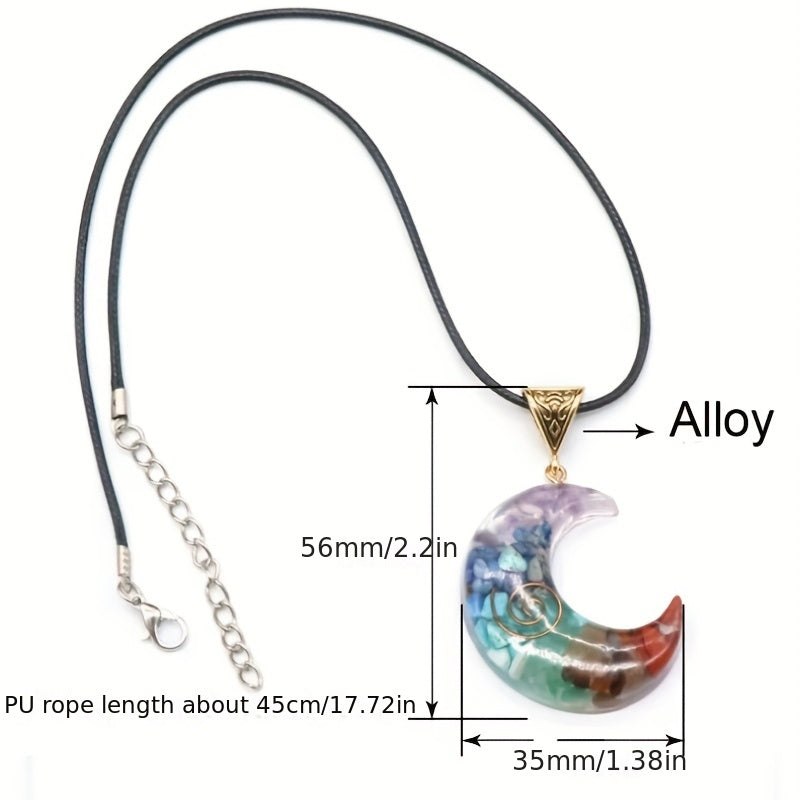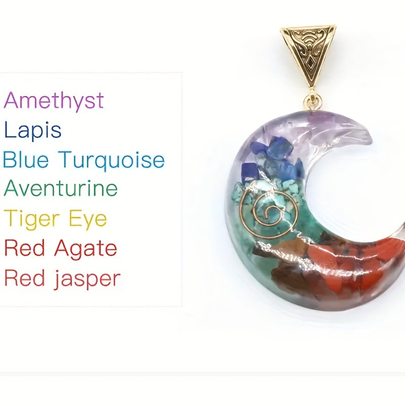 Enhance your energy with this natural 7 Chakra Orgonite Chips Stone pendant necklace. Perfect for women who want to balance their chakras and add a touch of style to their outfit.