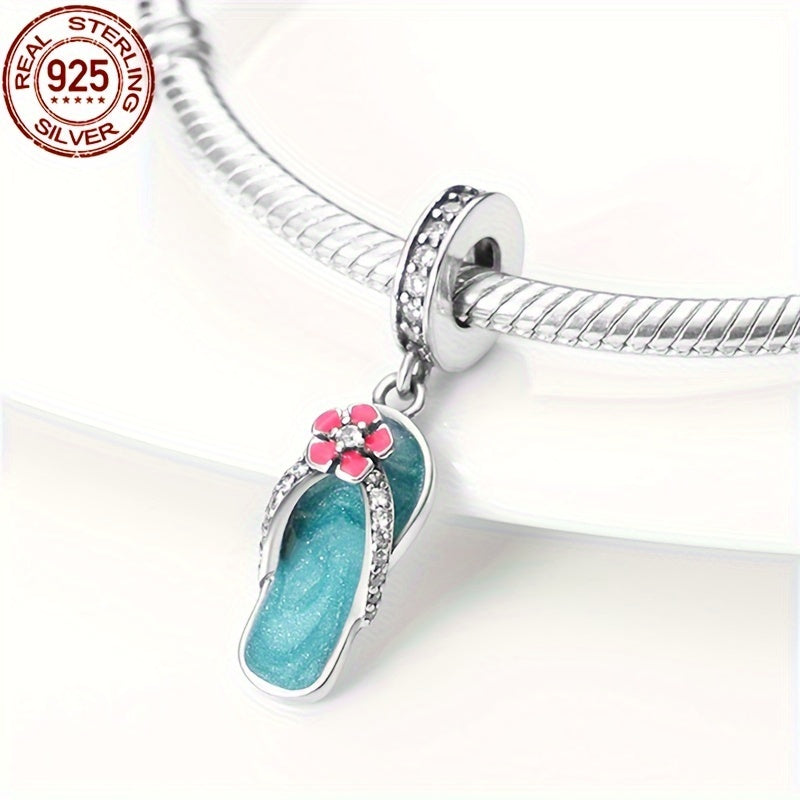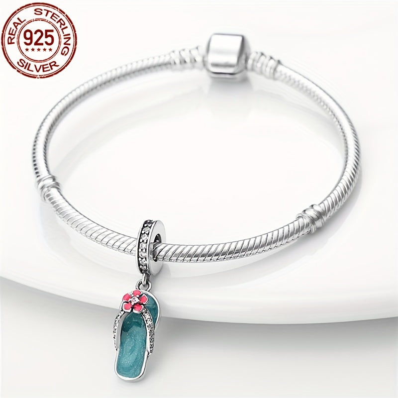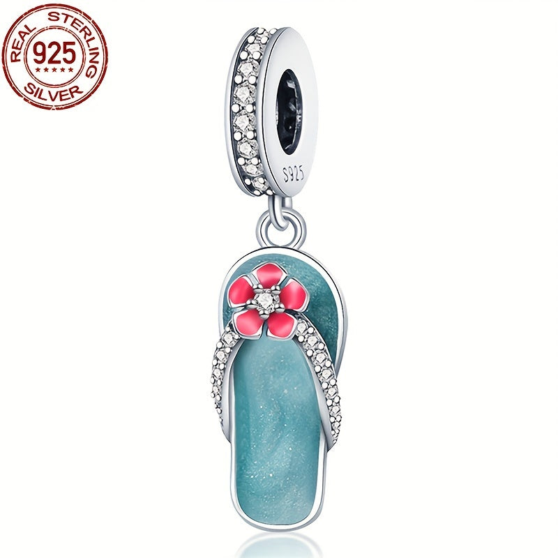Add a touch of summer to your bracelet with this charming flip flop charm. Crafted in 925 sterling silver, it features a red floral accent and sparkling pav edging. Compatible with 3mm bracelets and bangles.