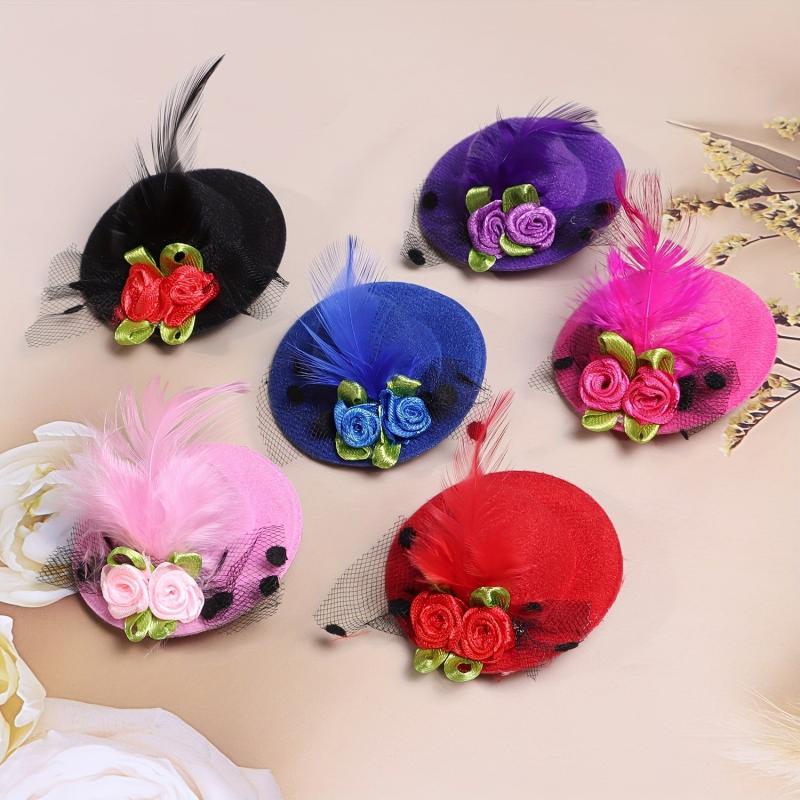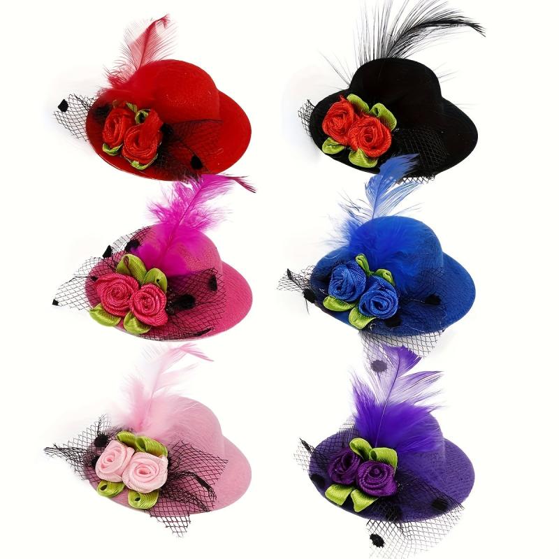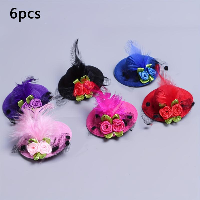 • 6pcs Multicolor Fleece Double Flower Mini Hats