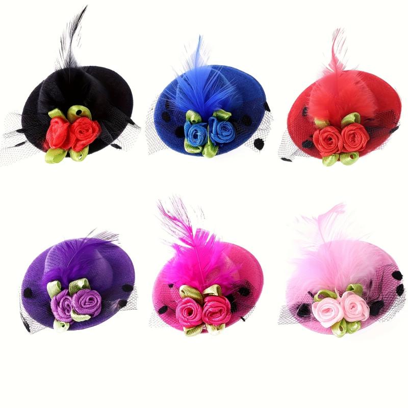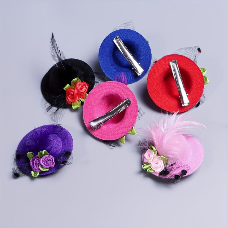 Vibrant Floral Mini Hats 6pcs Multicolor Fleece Double Flower Mini Hats