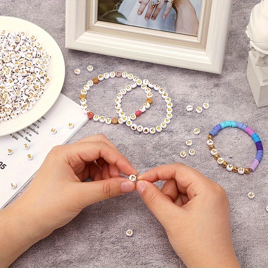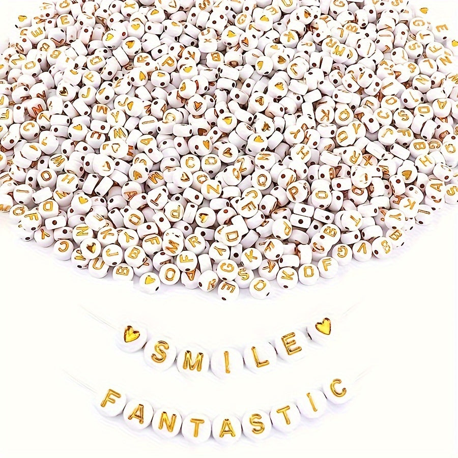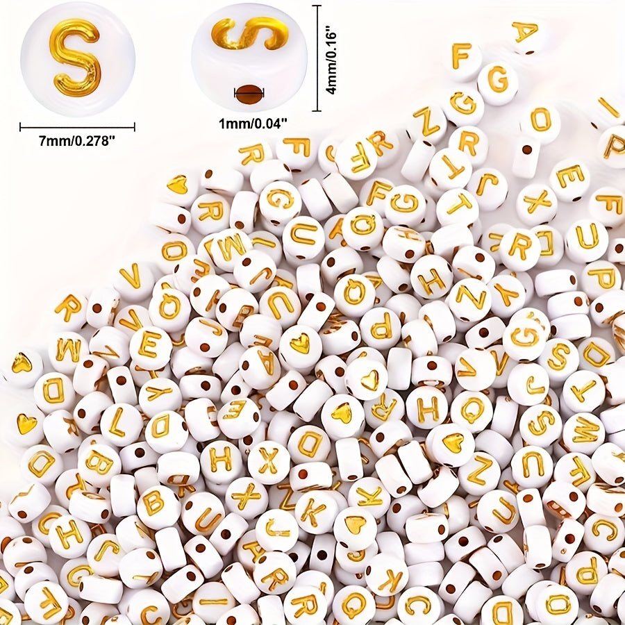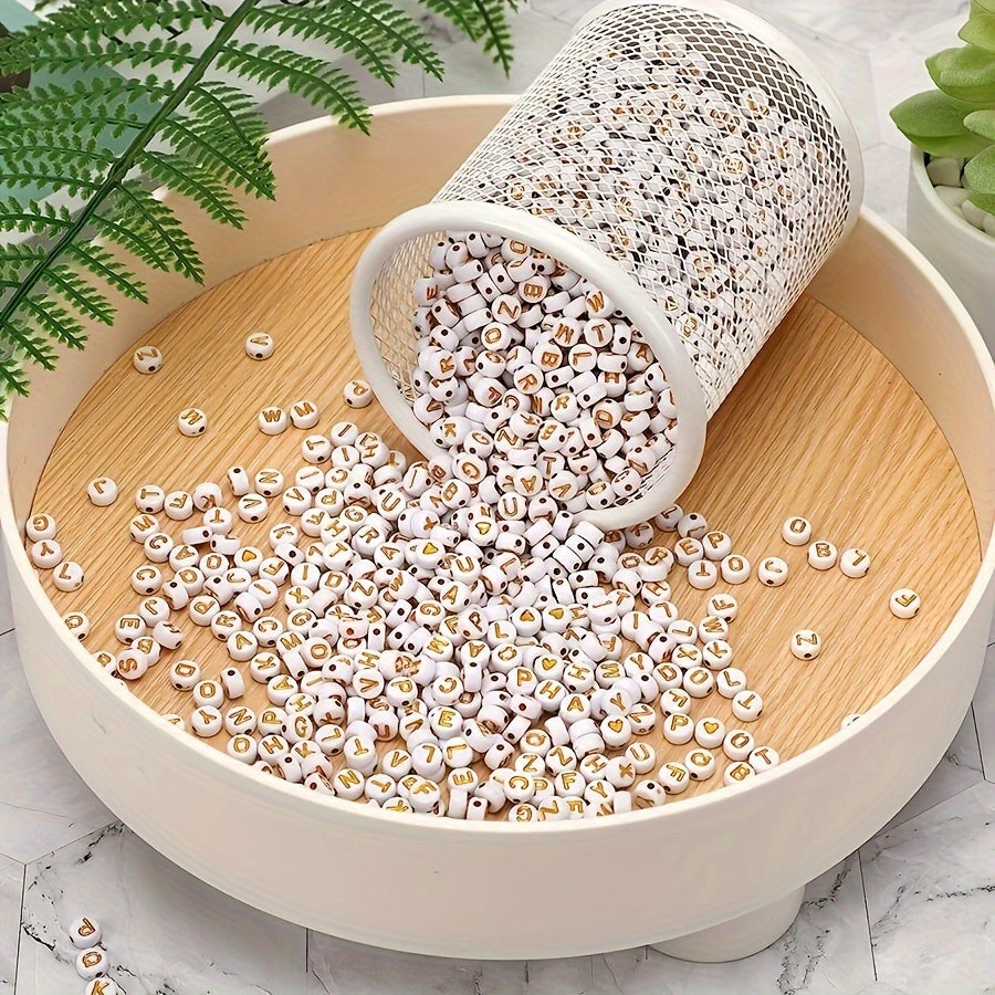 • Pack of 500-1000 round golden letter acrylic beads