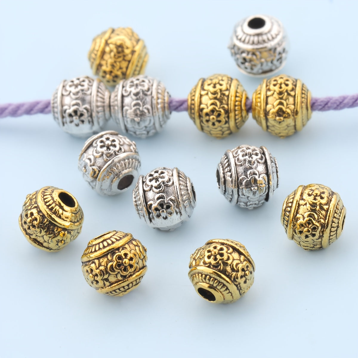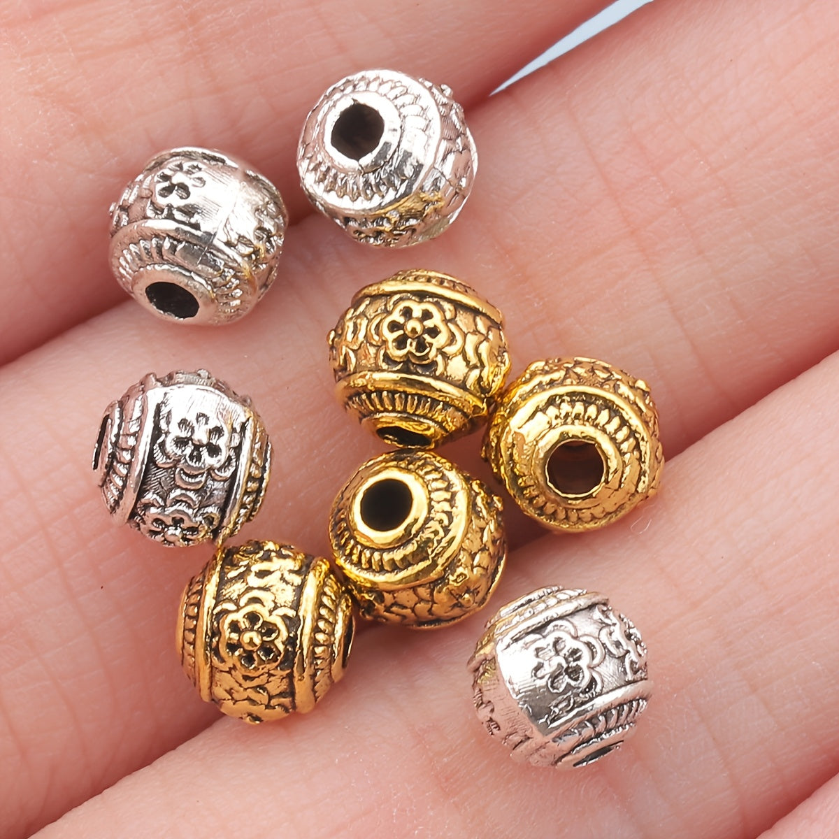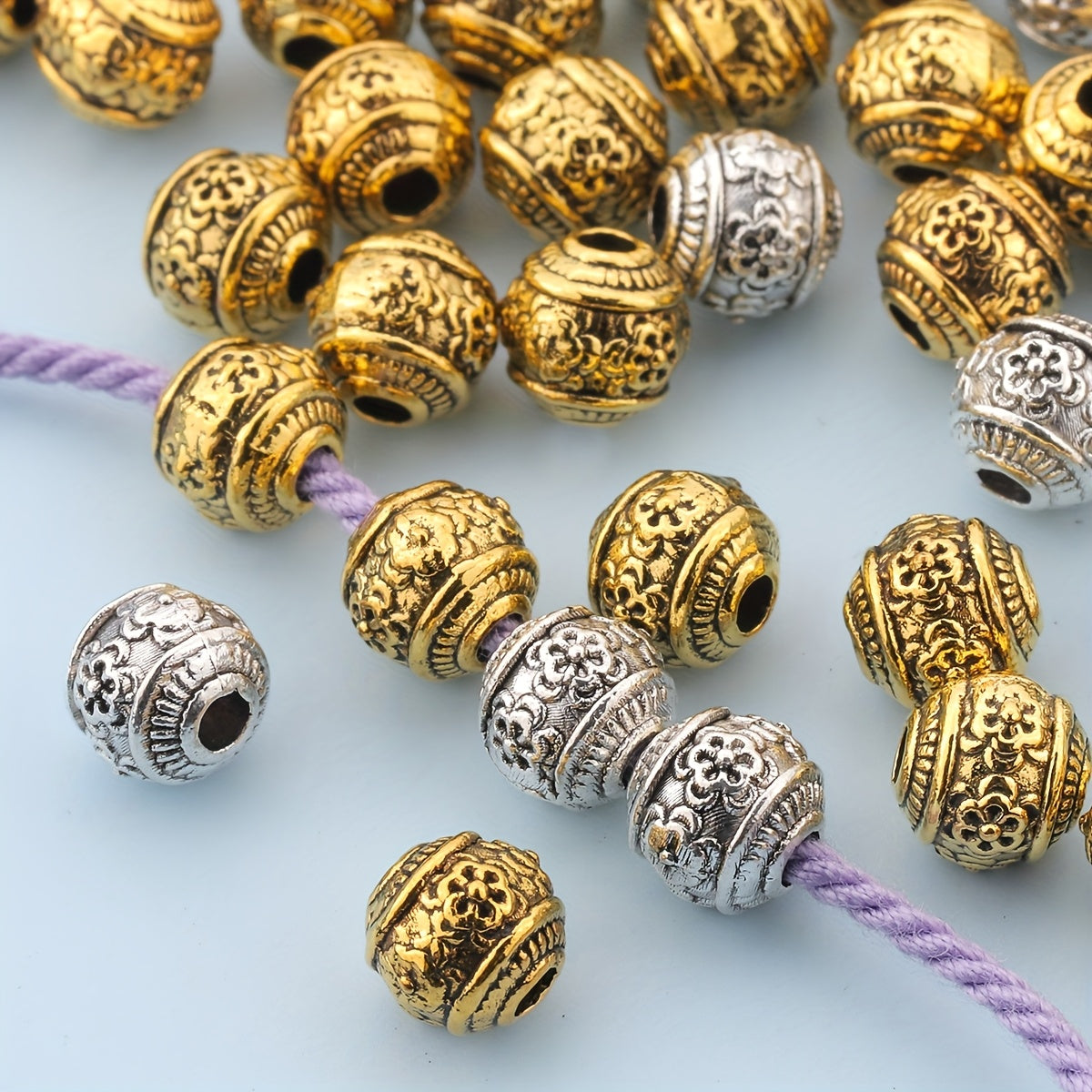 Add a touch of vintage charm to your DIY jewelry projects with this set of 100 flower pattern spacer beads. Perfect for making necklaces, bracelets, and more.