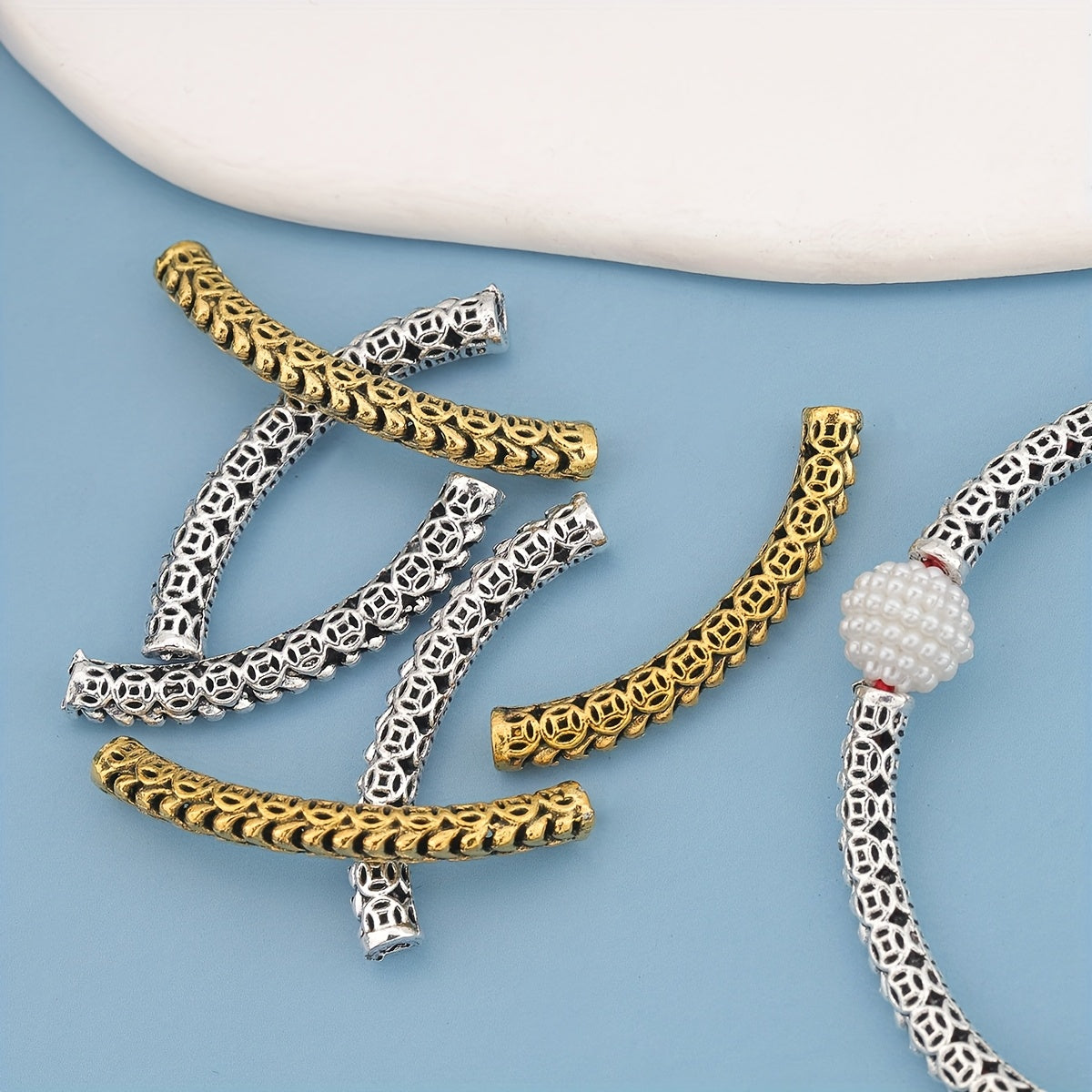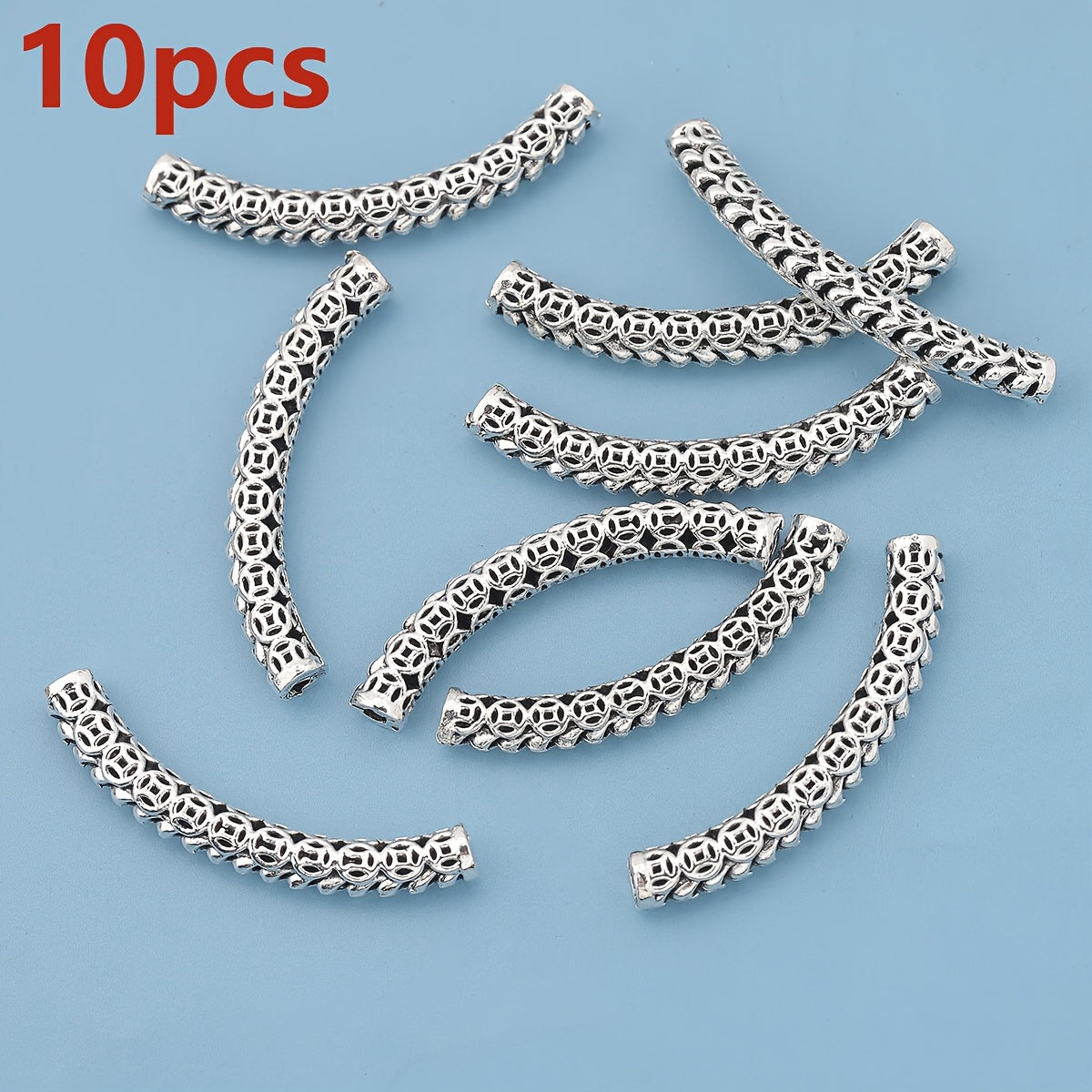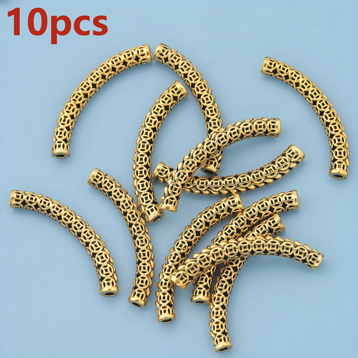 Add a touch of vintage charm to your jewelry designs with these 10pcs hollow bent tube spacer beads. The aging pattern and straight hole design make them perfect for creating unique pieces.