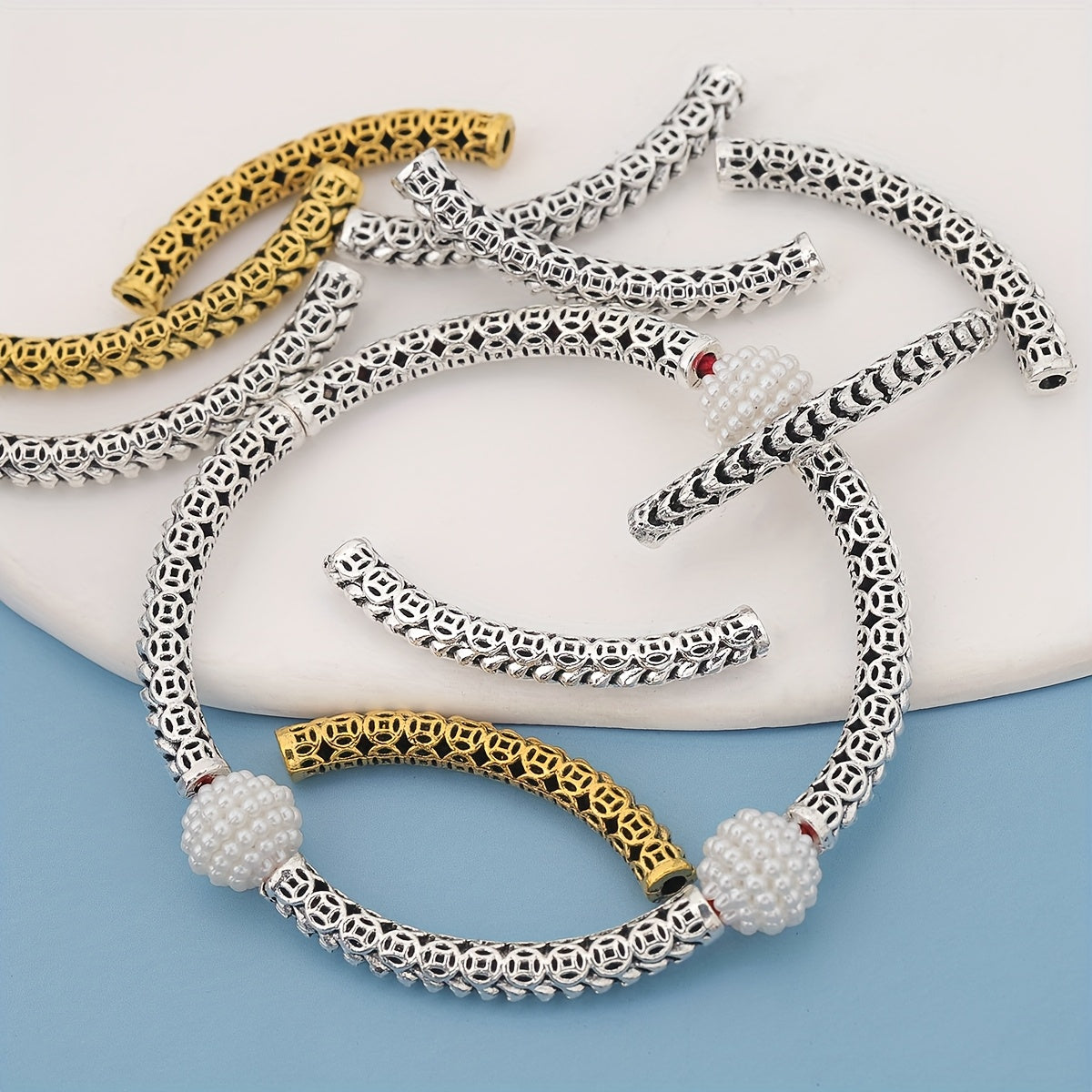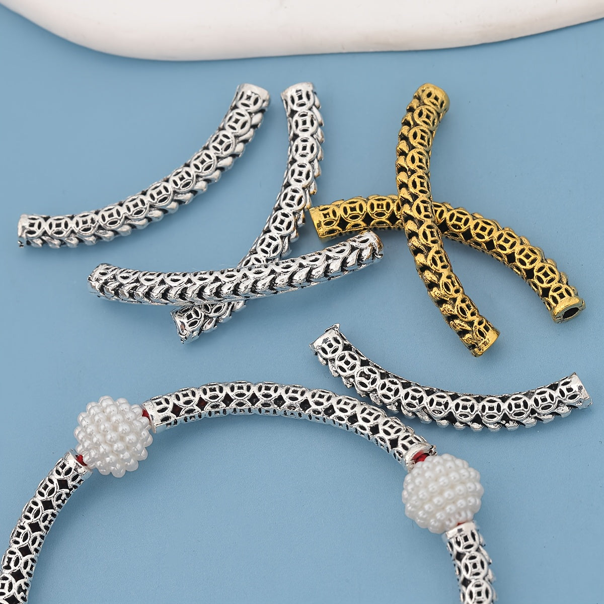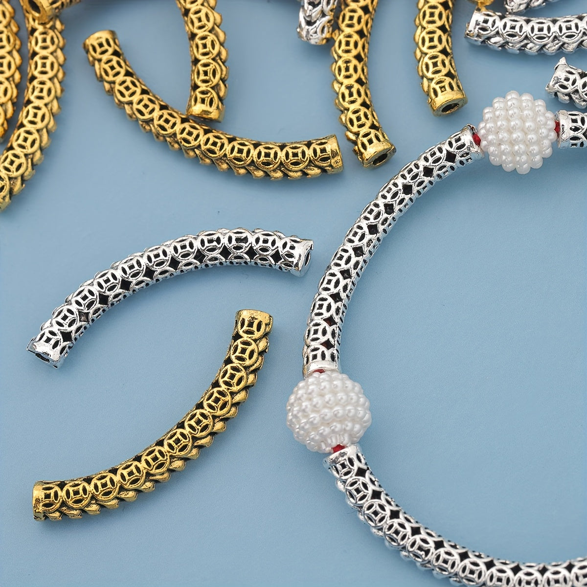 Add a touch of vintage charm to your jewelry designs with these 10pcs hollow bent tube spacer beads. The aging pattern and straight hole design make them perfect for creating unique pieces.