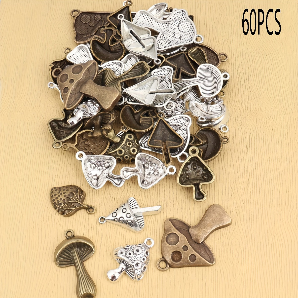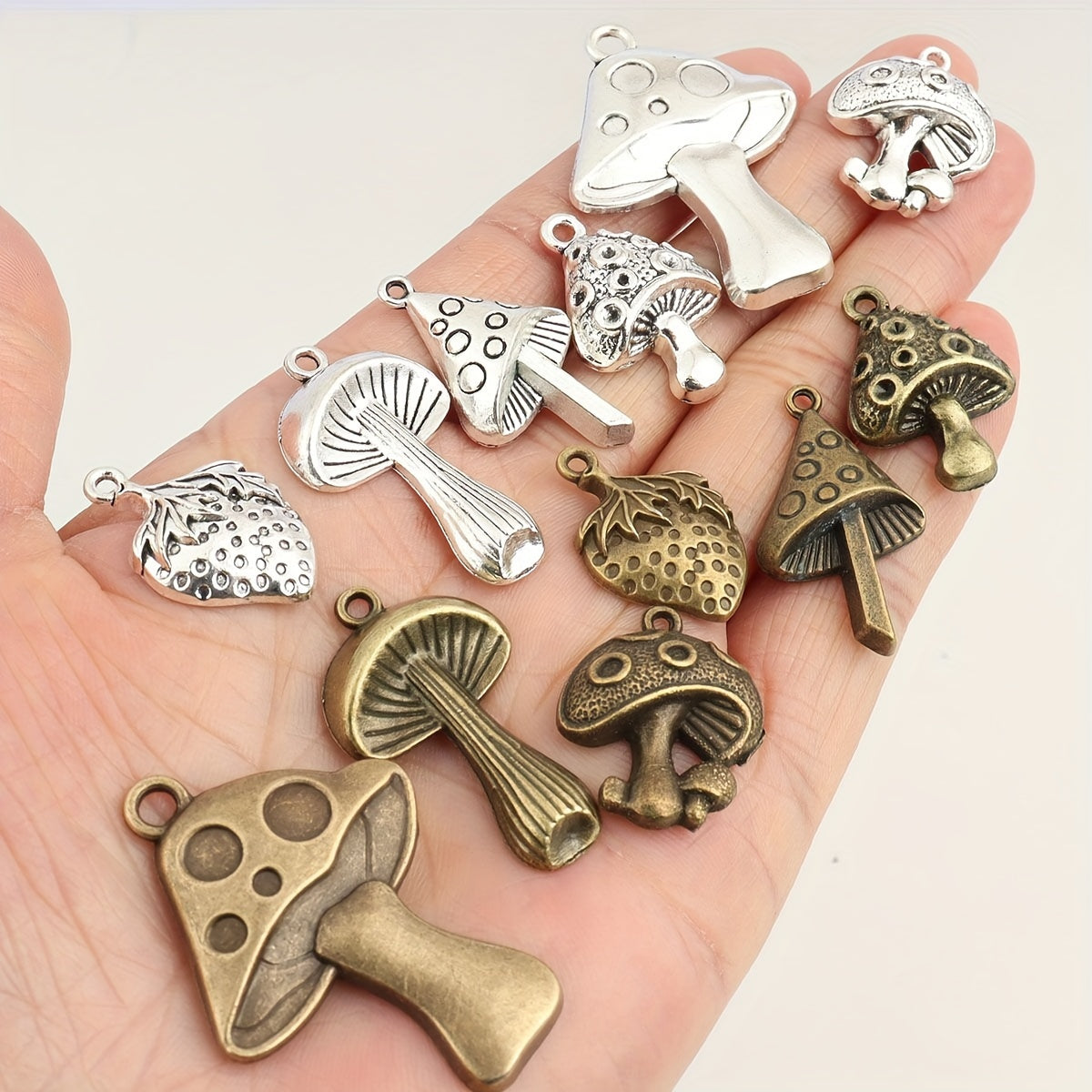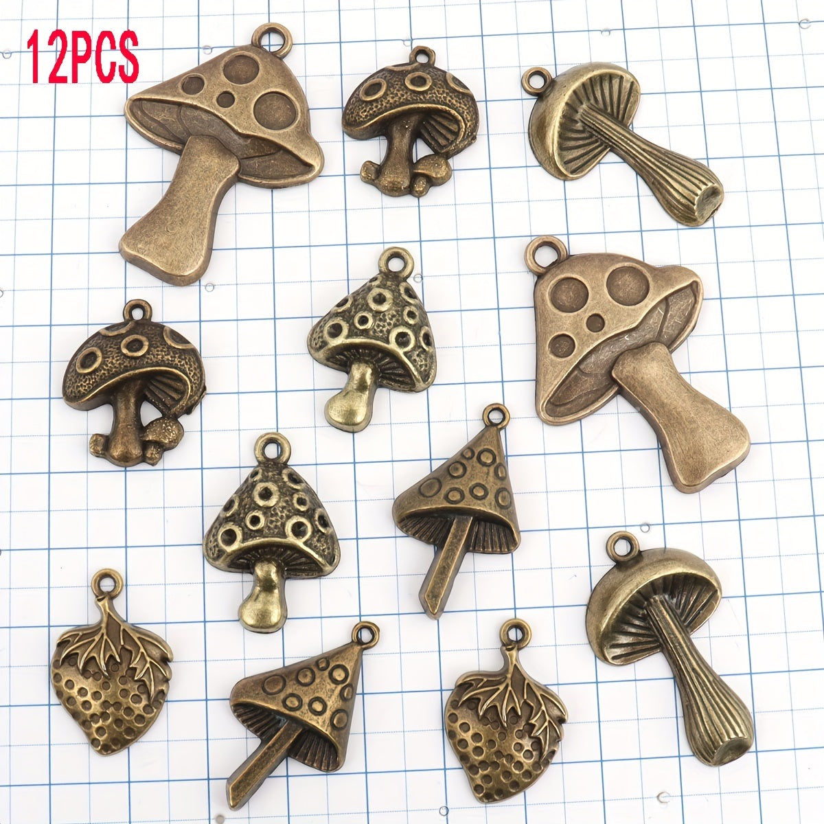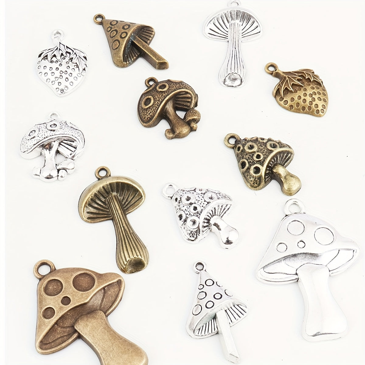 Get a random mix of 12pcs or 60pcs vintage mushroom, strawberry, and versatile alloy pendant necklace earrings for your DIY jewelry projects. Create unique pieces with charm and style.