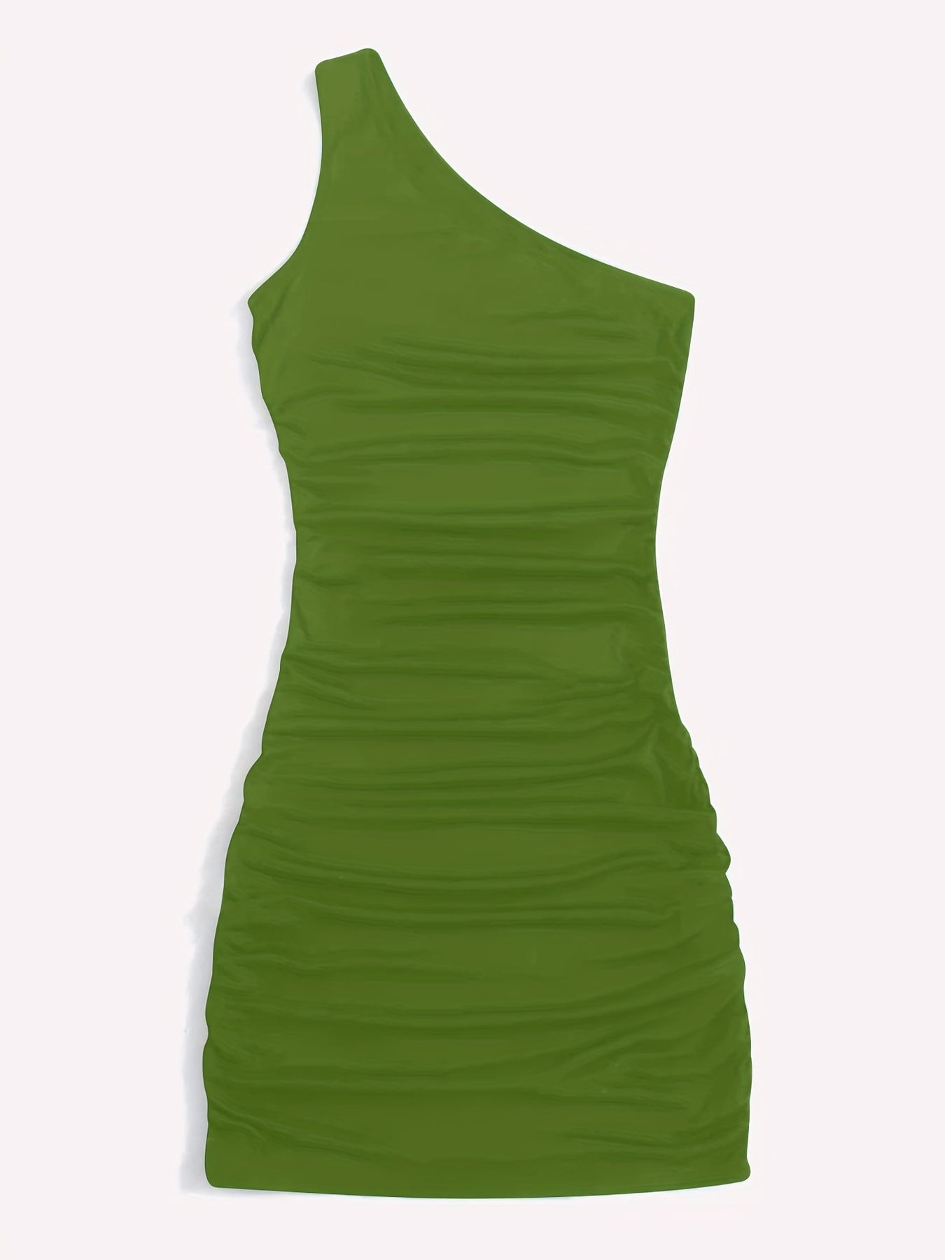 Elevate your style with this sexy one shoulder bodycon dress. The ruched design adds a trendy touch, perfect for a night out or special occasion.