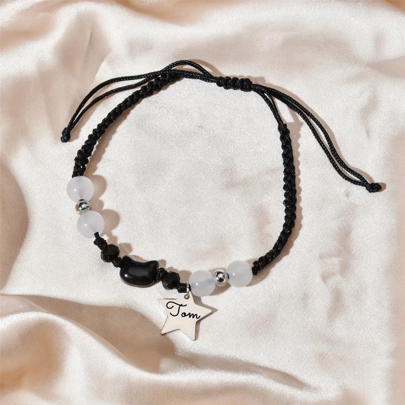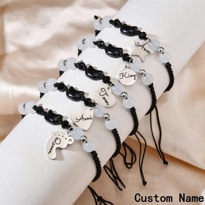 This unique beaded bracelet features tribal style weave material that is ideal for daily and vacation wear. It's the perfect personalized gift for family and friends.