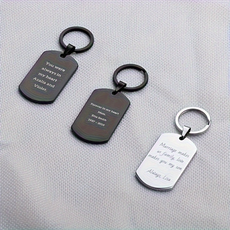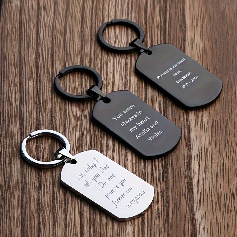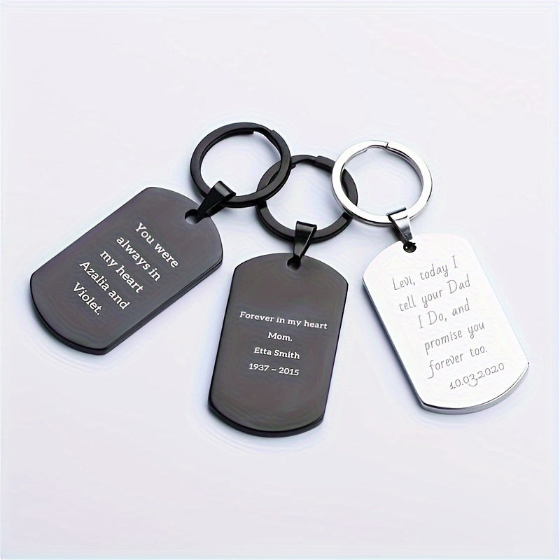 This personalized dog tag keychain is made of high-quality stainless steel, perfect for adding a personal touch to your keys.
