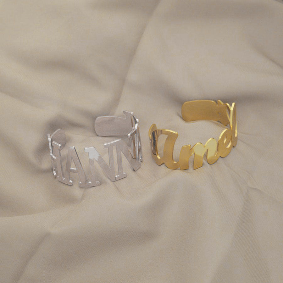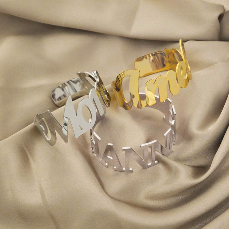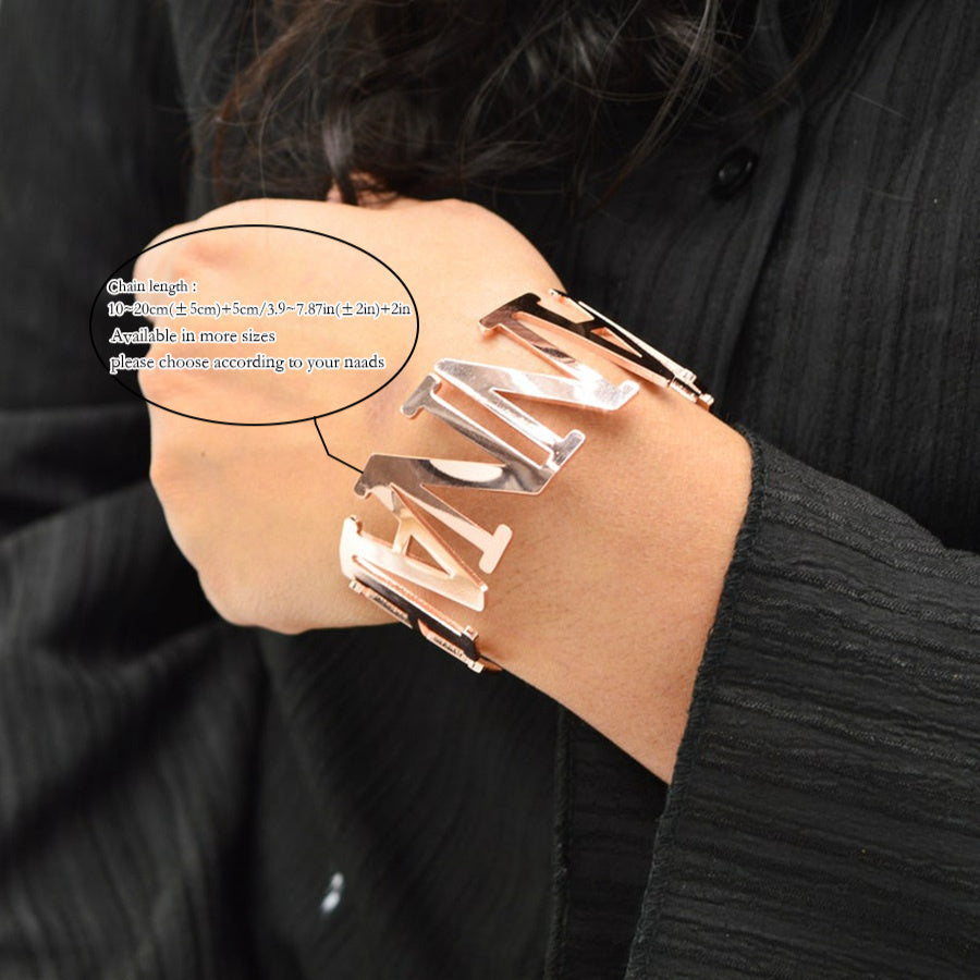 This adjustable armlet is a perfect accessory for women, featuring a customizable metal fiber name cuff. Give a unique and personalized gift with this moniker band.
