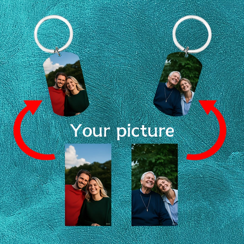 Customize this military tag keychain with a photo, perfect for anniversary, Valentine's, Mardi Gras, Father's Day gifts.