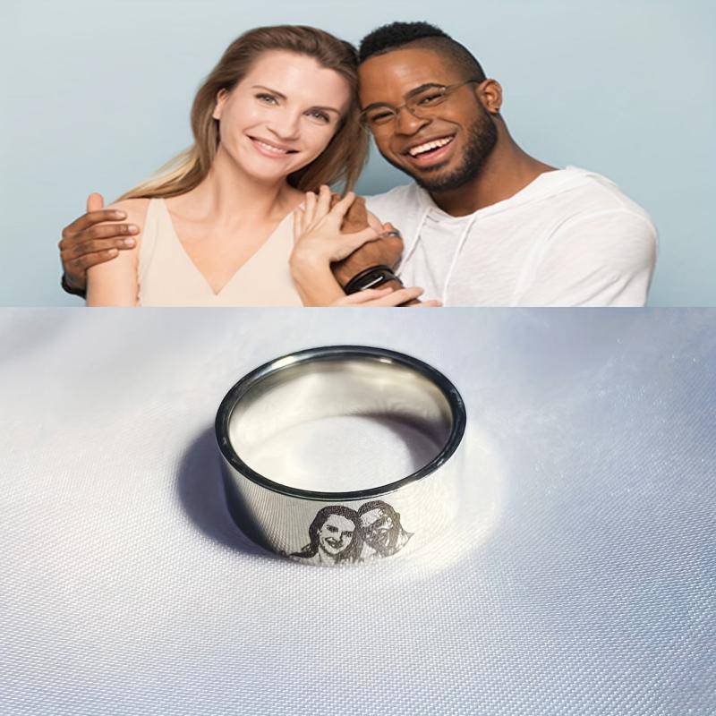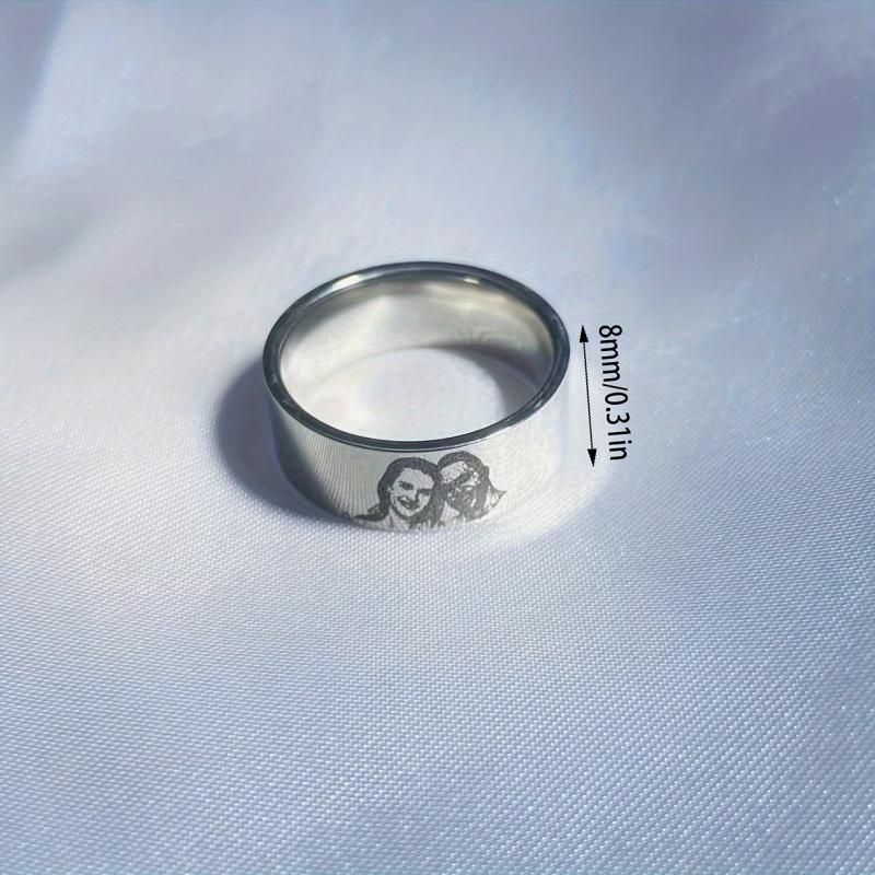 Create a unique and meaningful piece of jewelry with this stainless steel infinity band ring featuring a custom engraved photo. Perfect for men and women, this ring is a stylish way to showcase your favorite memories.