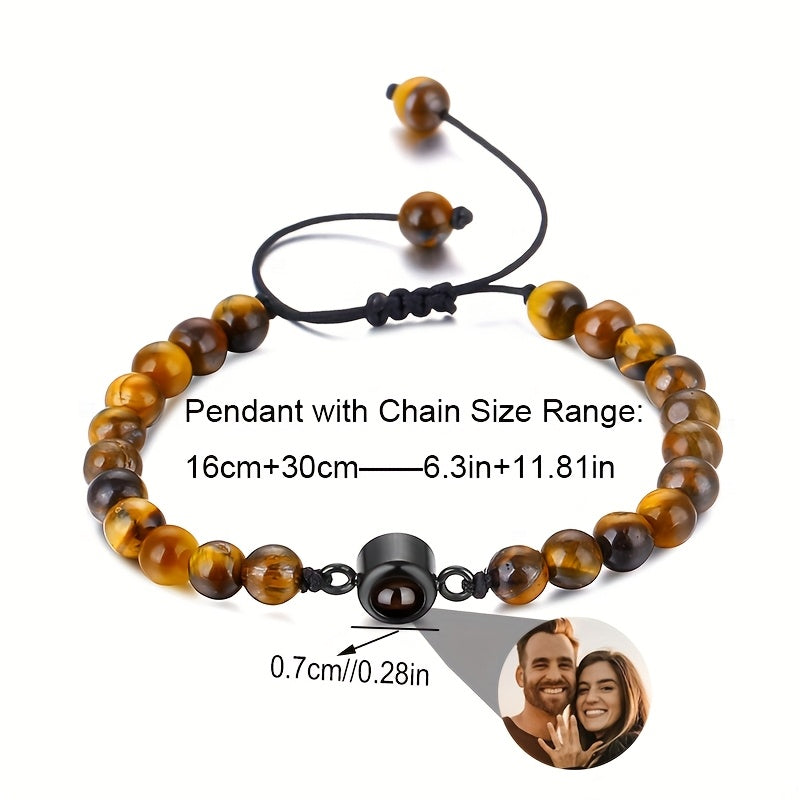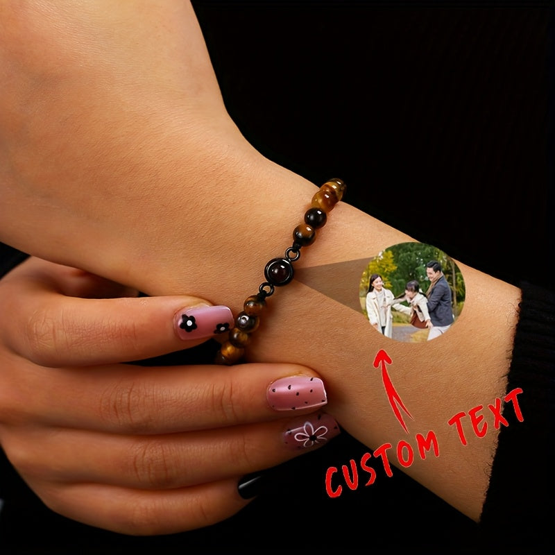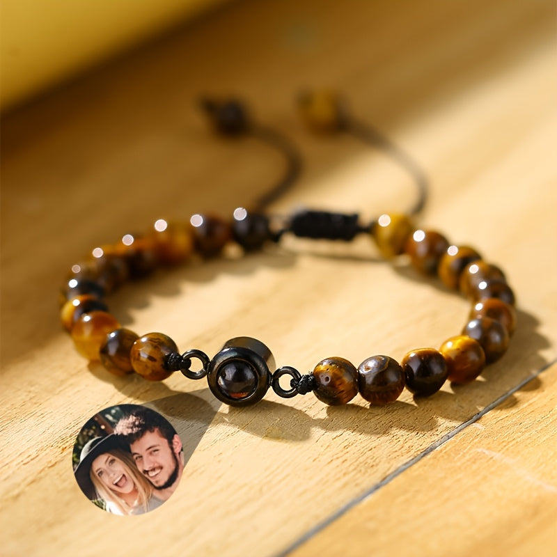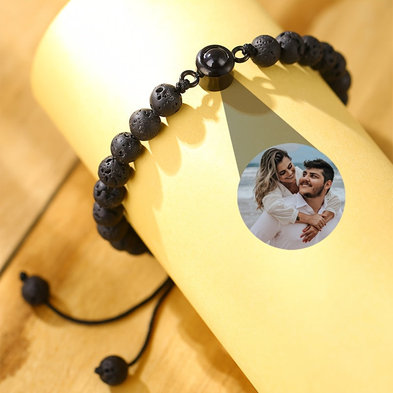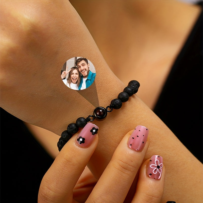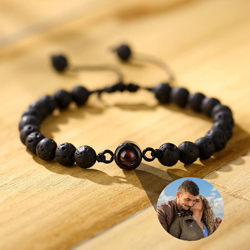 Enhance your style with this custom projection bracelet featuring natural stone inlays and creative volcanic stones. Capture cherished memories with the photo beads.