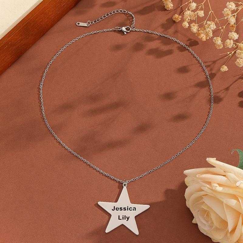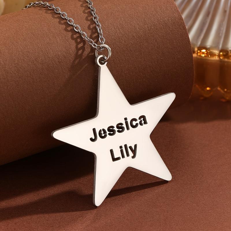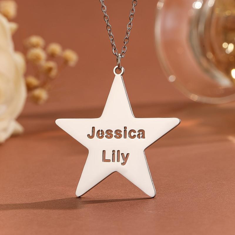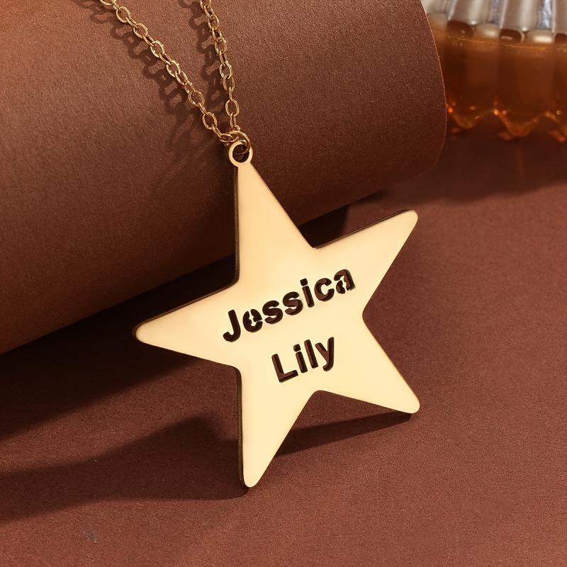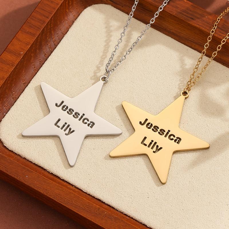 A unique personalized necklace featuring a pentagram star pendant made of durable stainless steel, suitable for both men and women. This piece of jewelry makes a perfect gift for any occasion.