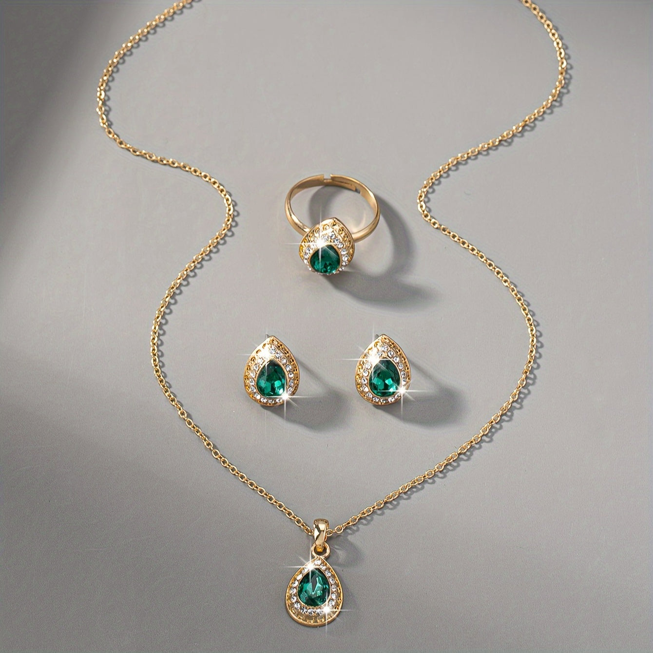 Elegant Vintage Bridal Jewelry Set Teardrop Gemstone Necklace Earrings