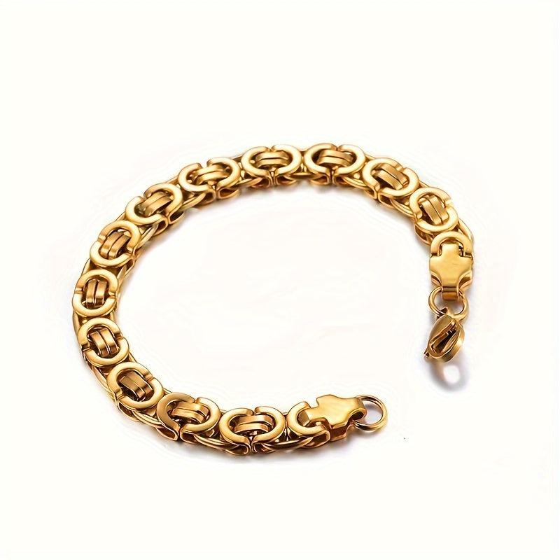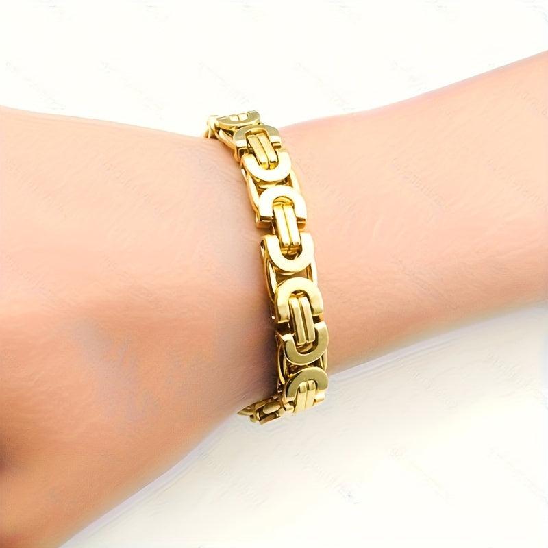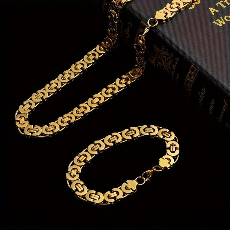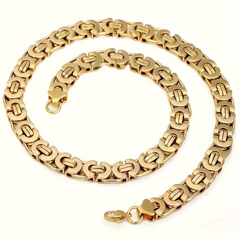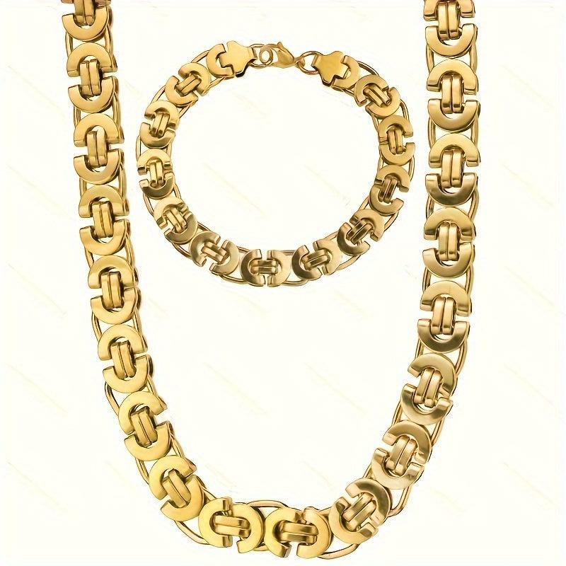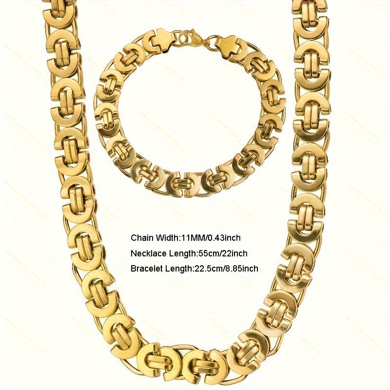 This stylish set features a flat section U-shaped chain made of durable stainless steel in a golden finish.