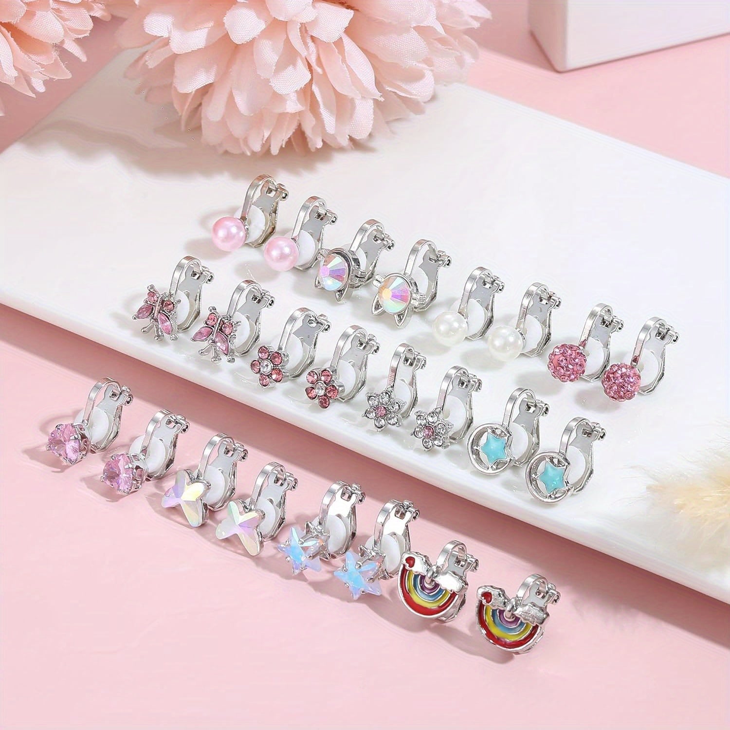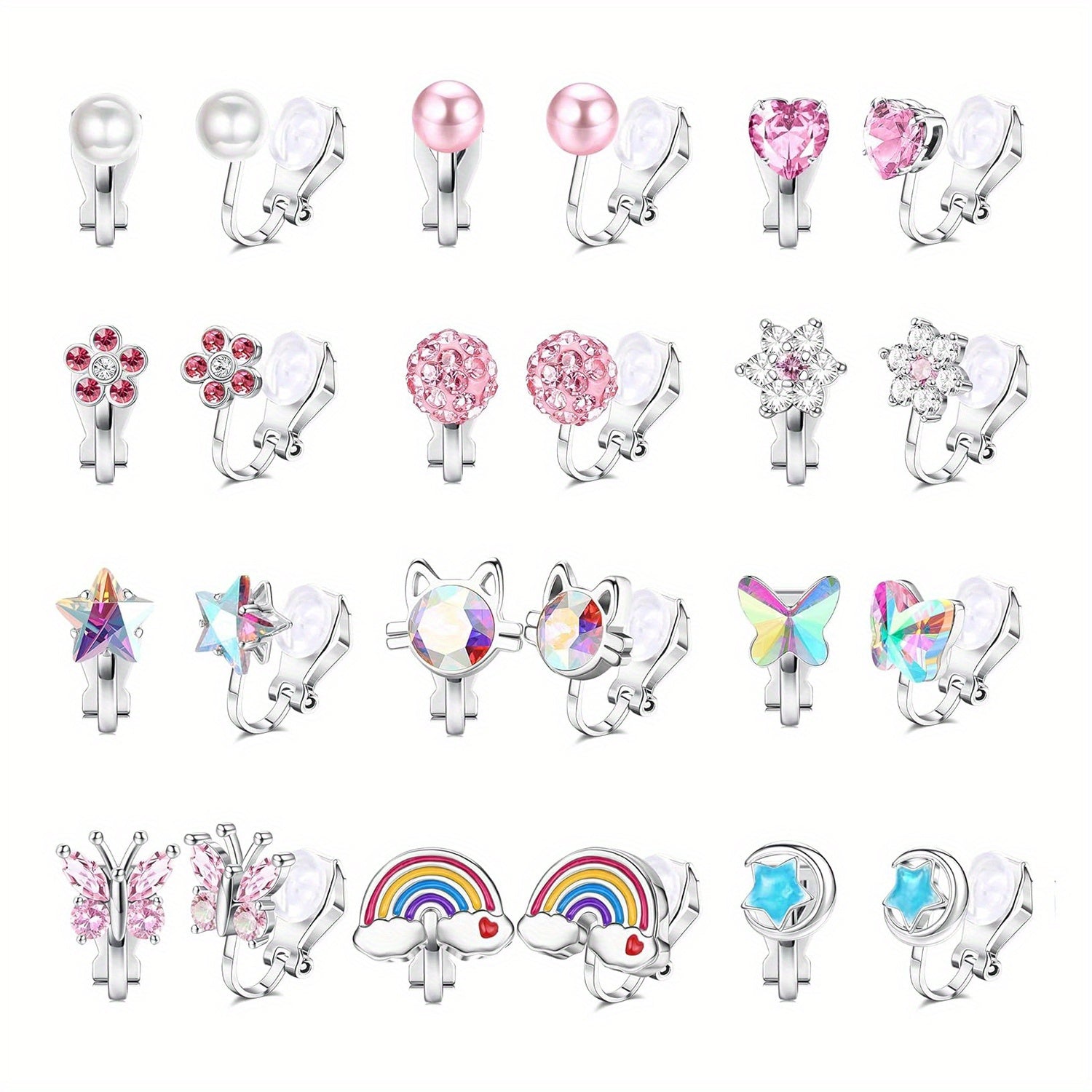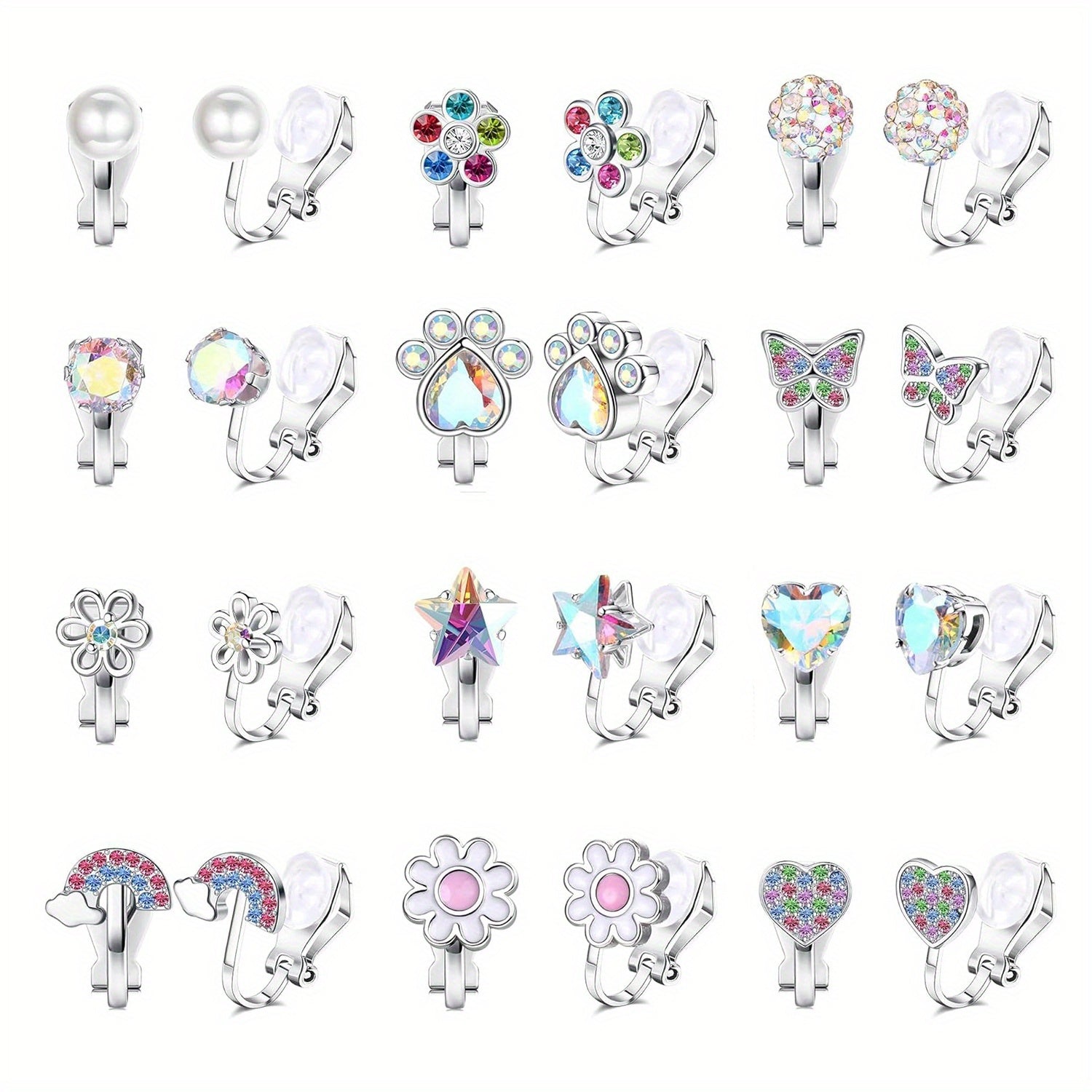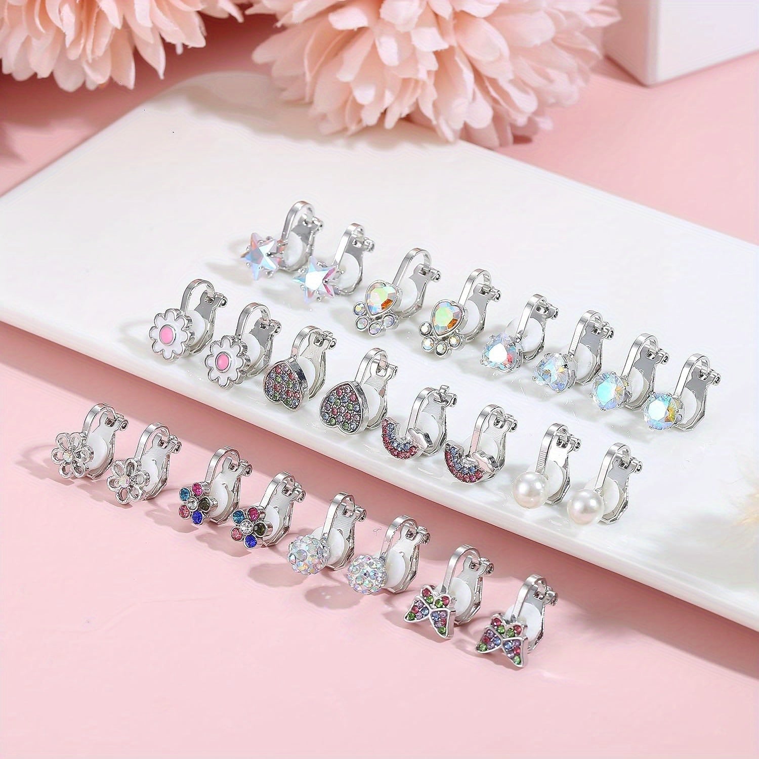 12 Pairs Women's Non Pierced Earrings Set Rainbow Butterfly Flower Heart CZ Clip