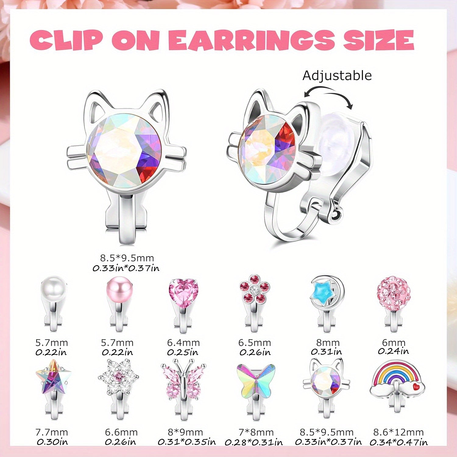 Add a touch of colorful elegance to your look with this set of 12 non-pierced clip-on earrings featuring rainbow, butterfly, flower, heart, and CZ designs.