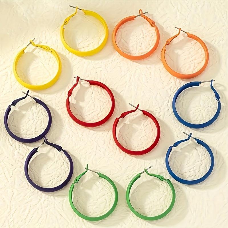 Add a fun and vibrant touch to your vacation and party outfits with this set of 12 retro bohemian earrings. Each pair features a unique design and bright colors to make a statement.