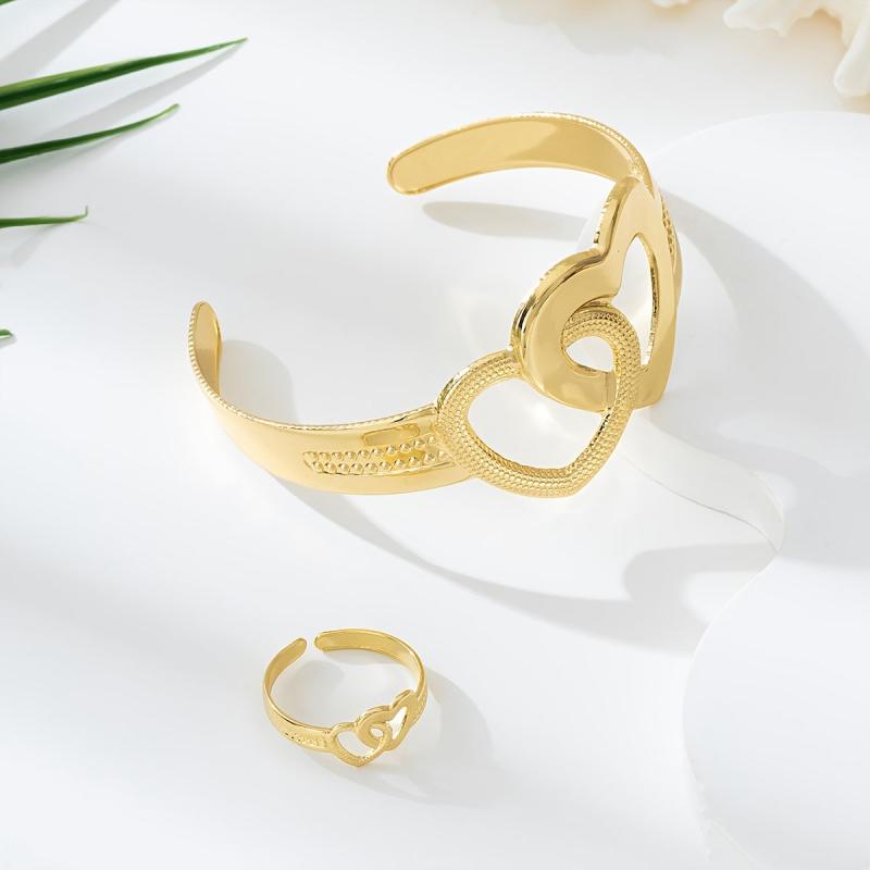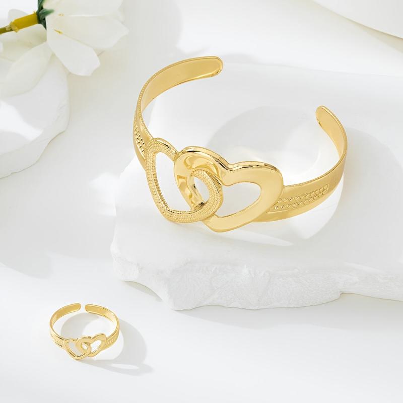 • Includes a cuff bracelet and ring set with double heart design
