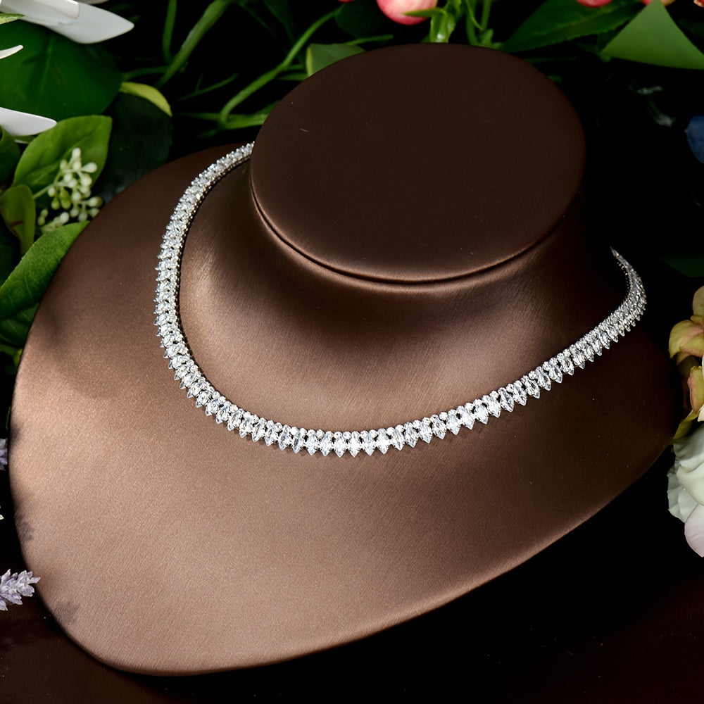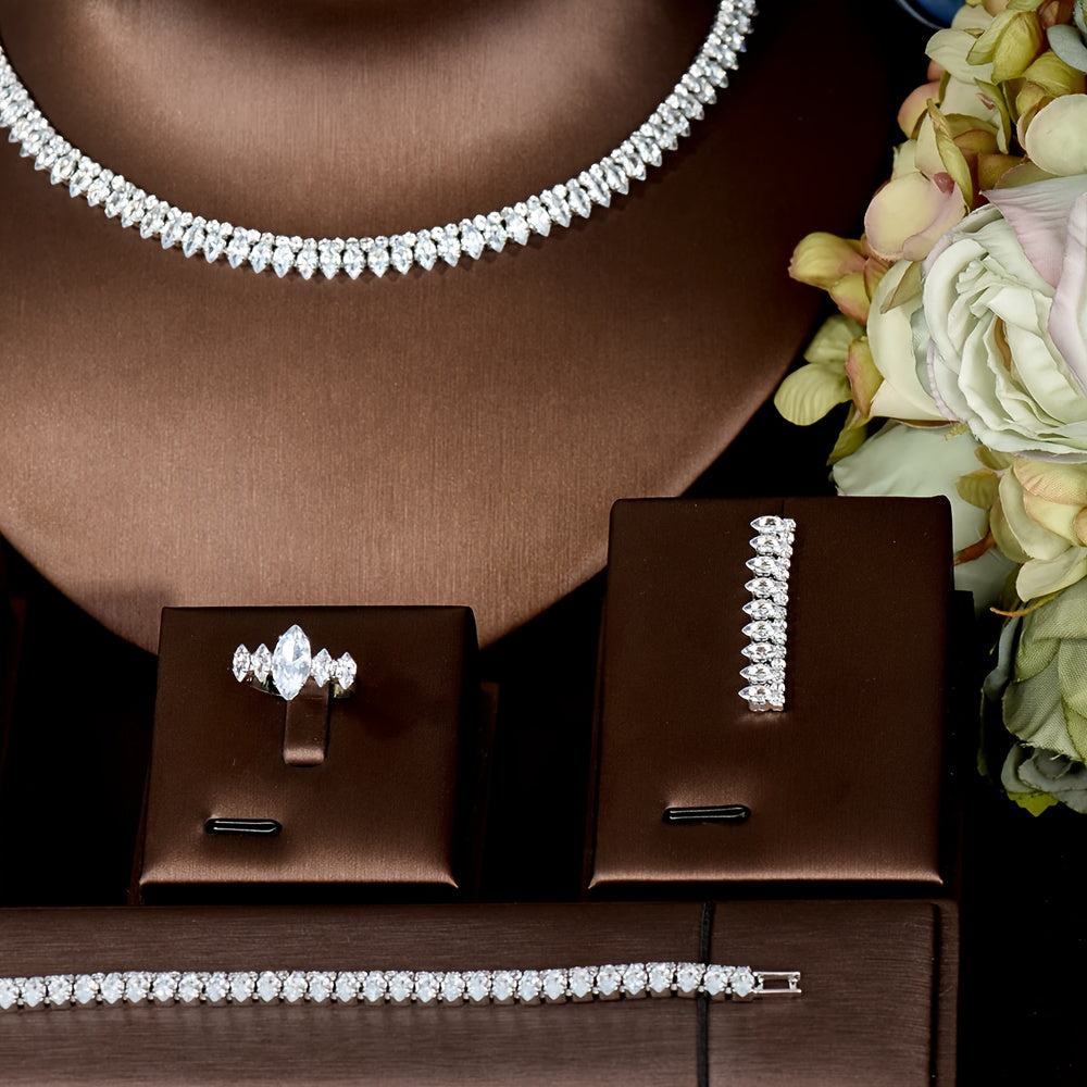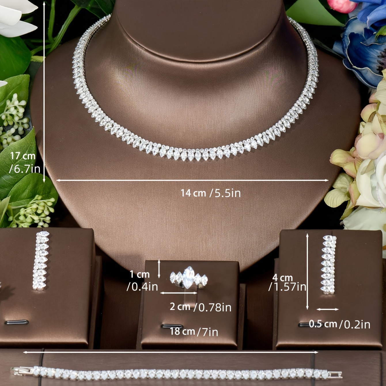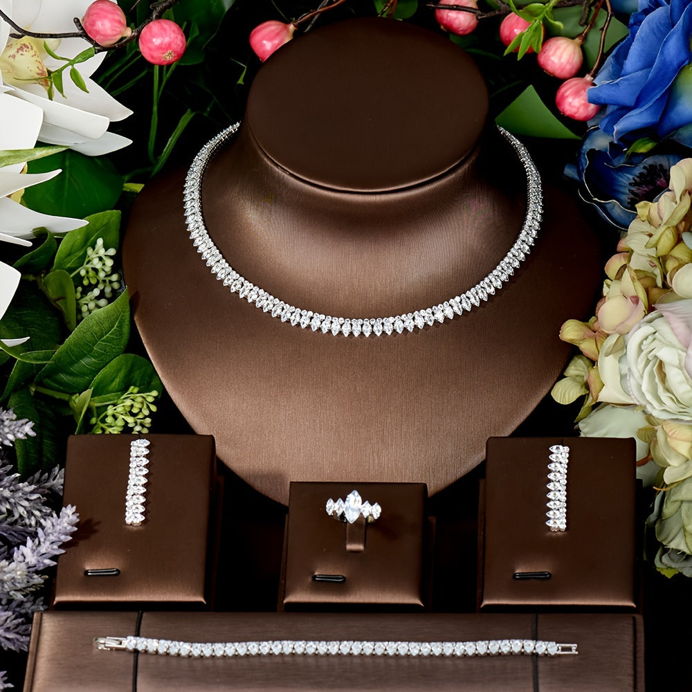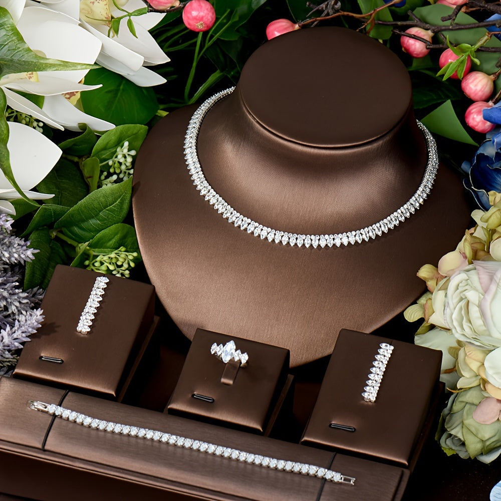 Elegant bridal jewelry set perfect for weddings and parties. Crafted with high-quality AAA zirconia stones for a luxurious look. Make a statement on your special day with this stunning set.