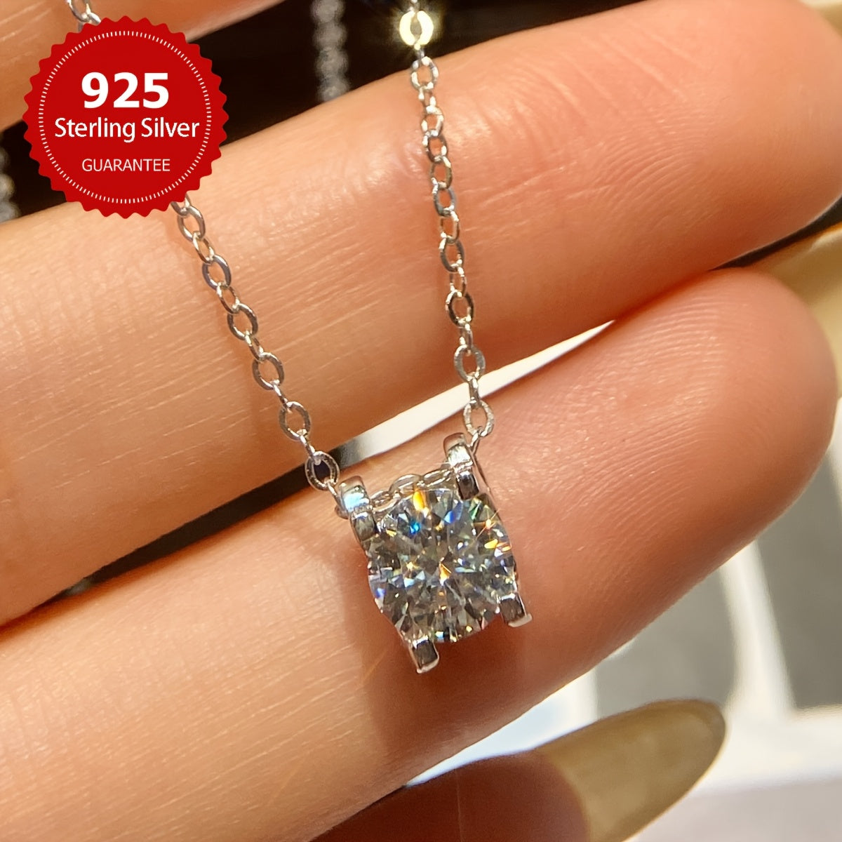 • 1CT Moissanite Necklace in 925 Sterling Silver