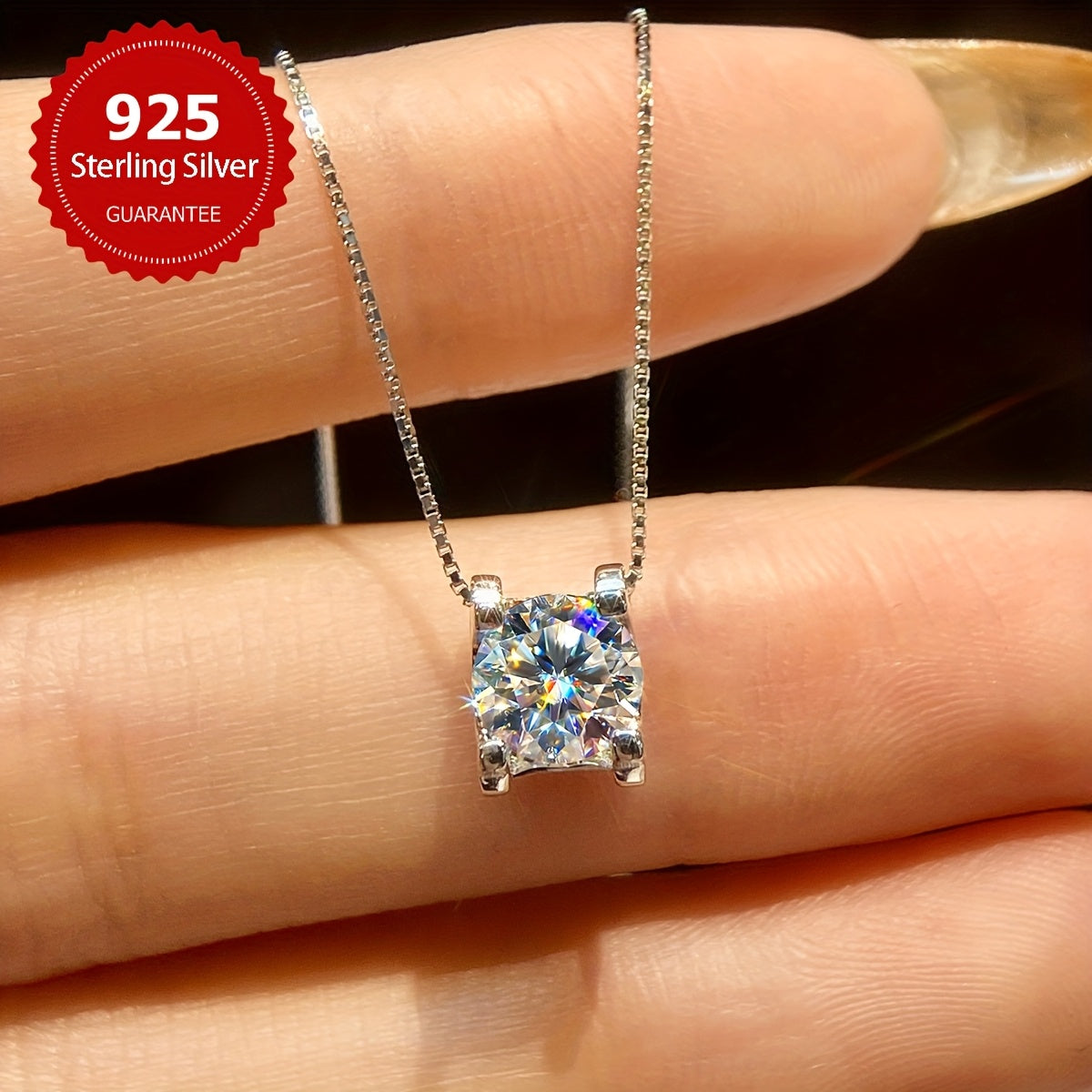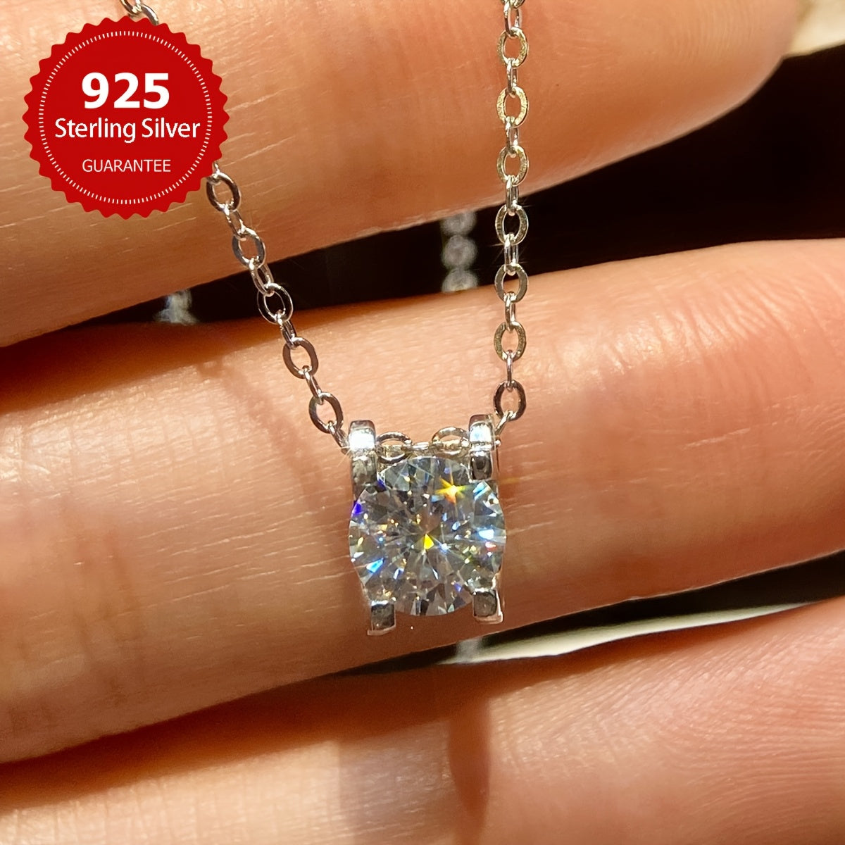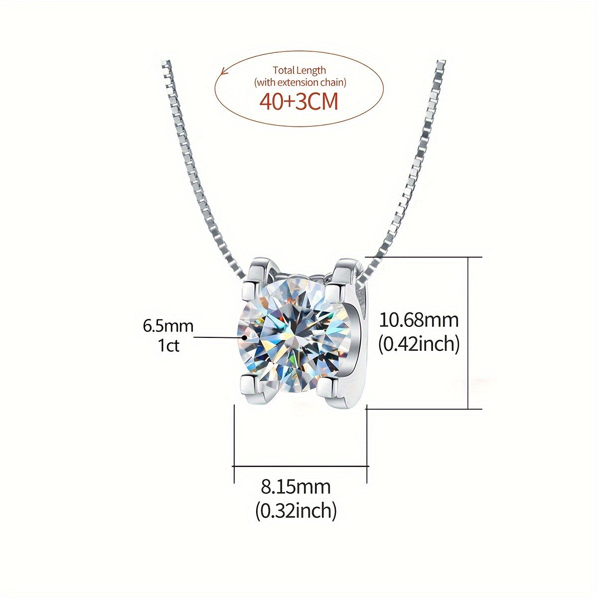 This sparkling 1CT Moissanite Necklace in 925 Sterling Silver is a perfect gift for weddings, promises, or to show your love. Elegant and noble bridal jewelry for women.