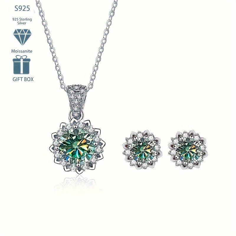 Upgrade your style with this stunning 4 5g S925 silver moissanite set. Perfect for parties, vacations, and as a gift. The classic floral design adds a touch of elegance to any outfit.