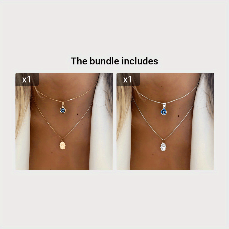 2pcs Evil Eye Pendant Necklace Set - Perfect for Dates & Casual Attire