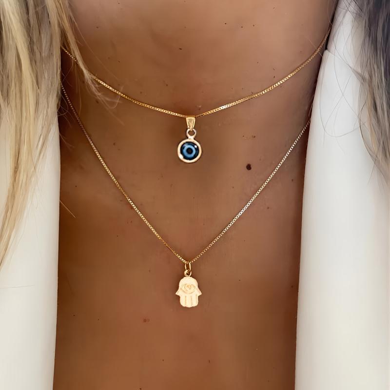 This minimalist pendant necklace set features an evil eye design that adds a touch of mystery and style to your outfit. Ideal for dates and casual wear.