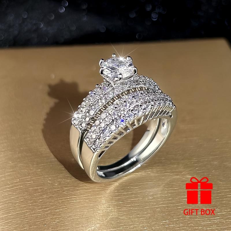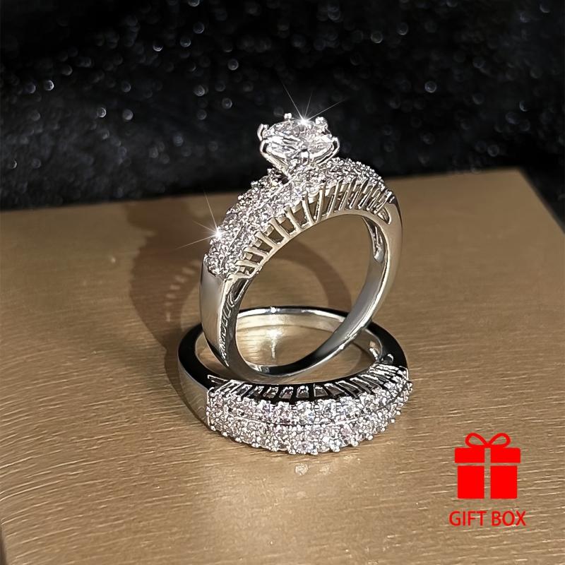 2pcs Vintage Style Copper Wedding Band and Engagement Ring Set