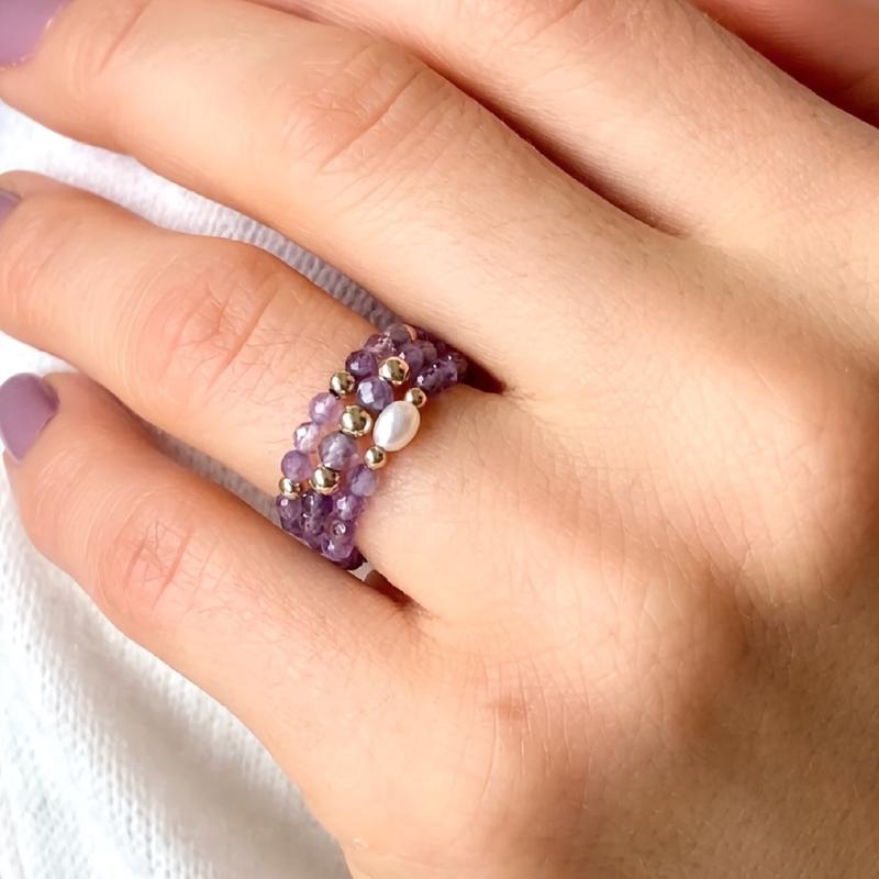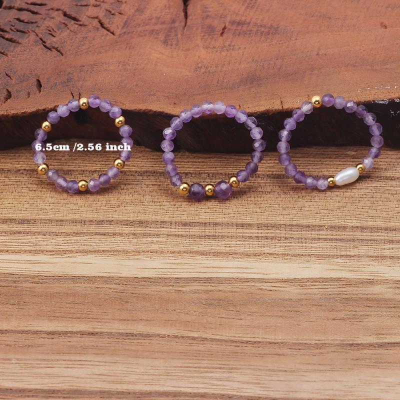 This set includes 3 amethyst beaded stretch rings, perfect for daily wear or as a gift for someone special. These rings are made of natural stone and are ideal for Valentine's Day or any holiday theme.