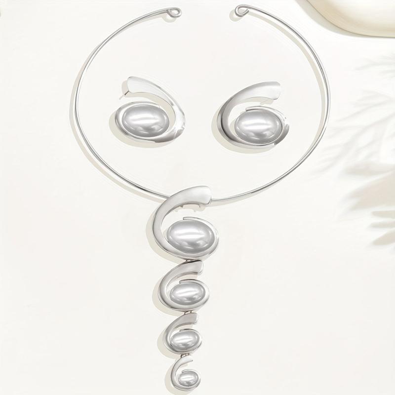Elevate your style with this fashionable 3-piece set featuring fine chain hanging multiple acrylic geometric spiral pendants. Perfect for women's daily wear or party occasions.