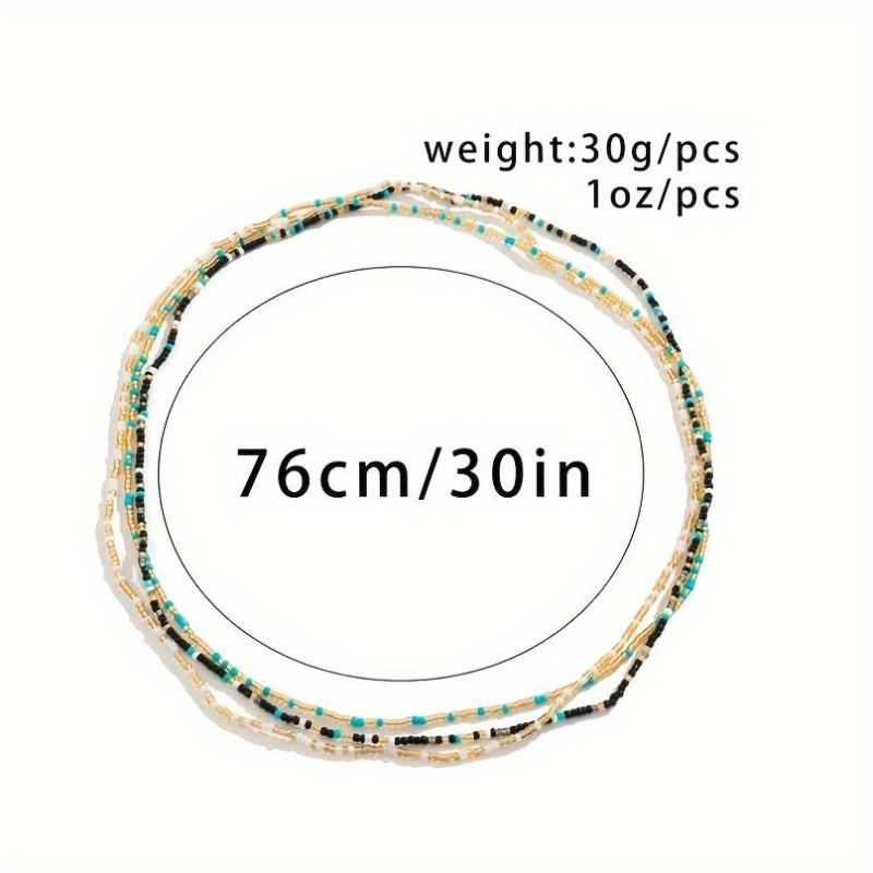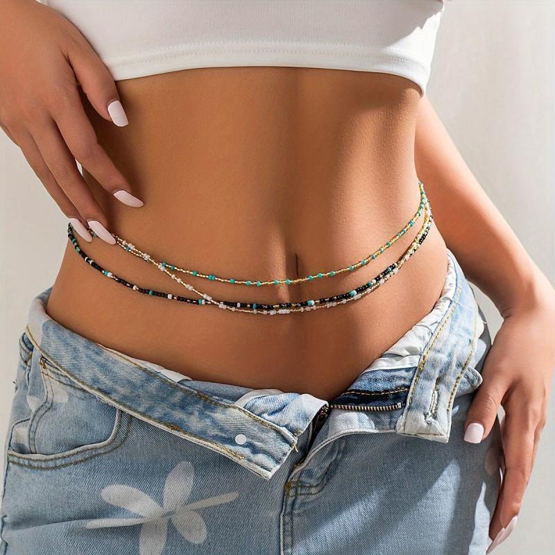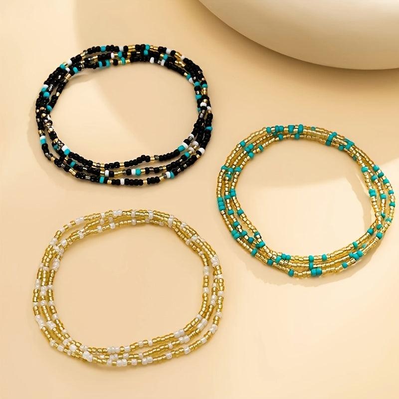 3pcs Colorful Beach Elastic Waist Bead Body Chain for Daily Wear