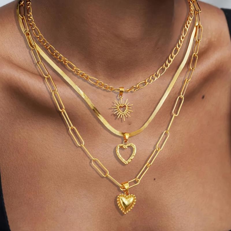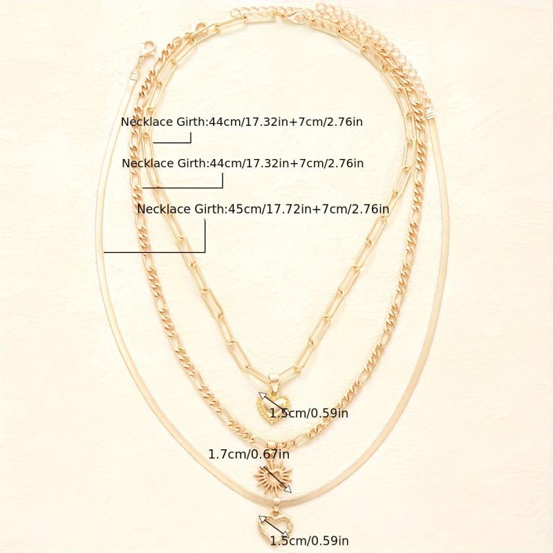 Enhance your style with this 3-piece retro hollow love pendant necklace set. Perfect for parties, travel, and everyday wear. Add a touch of elegance to your outfit!