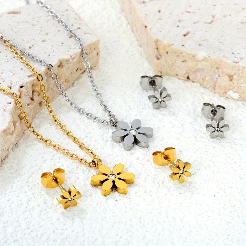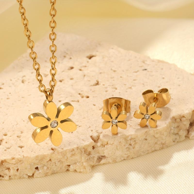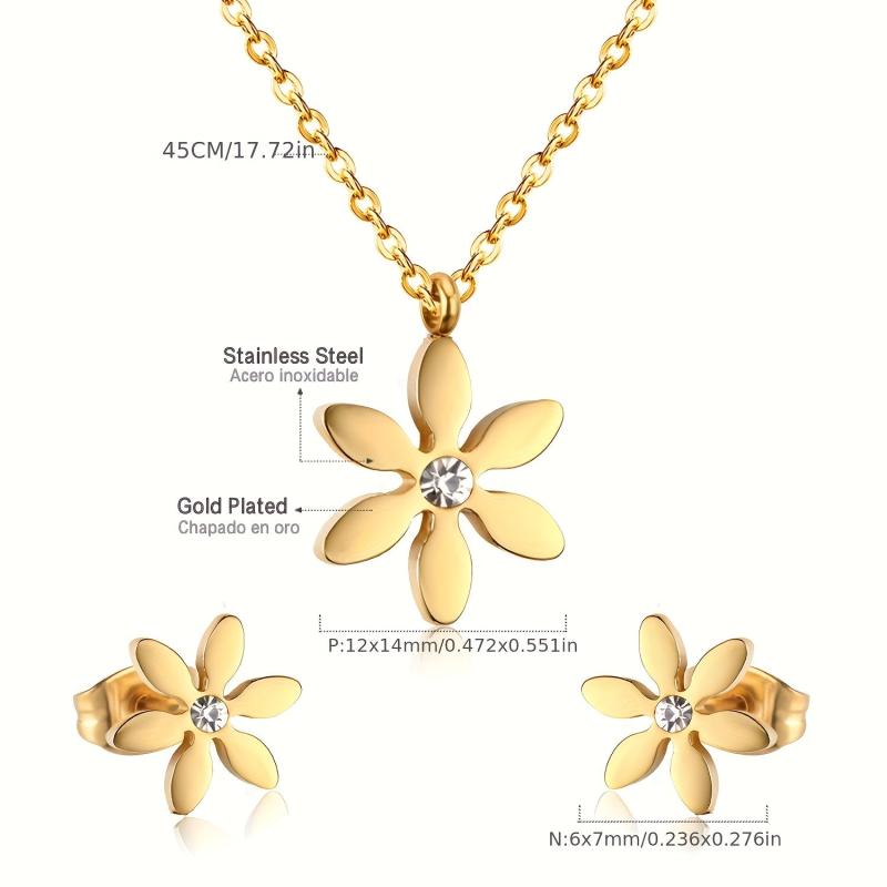Elevate your look with this high-end stainless steel snowflake necklace and earrings set, featuring 18K golden plating. Perfect for banquets, ceremonies, parties, and vacations.