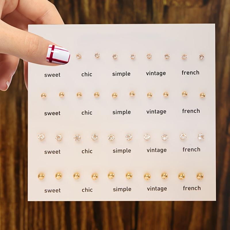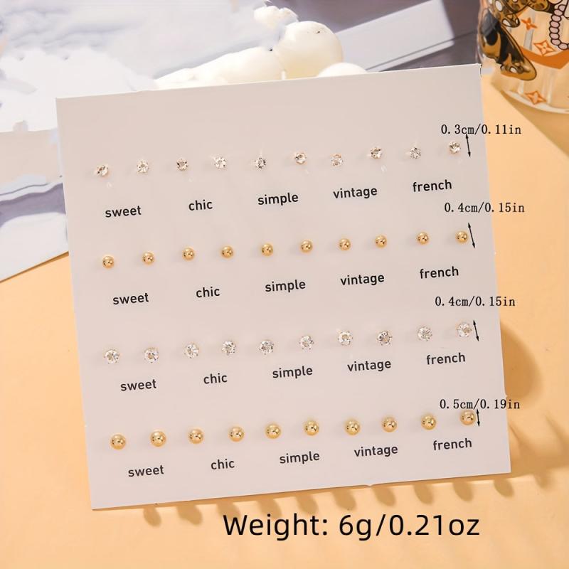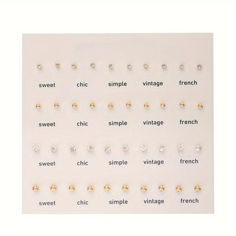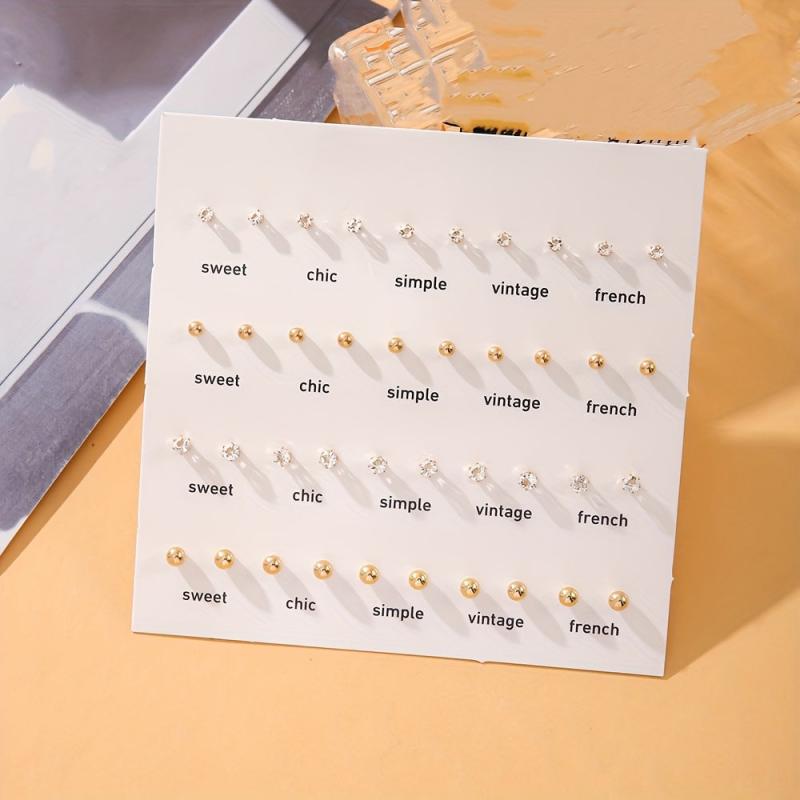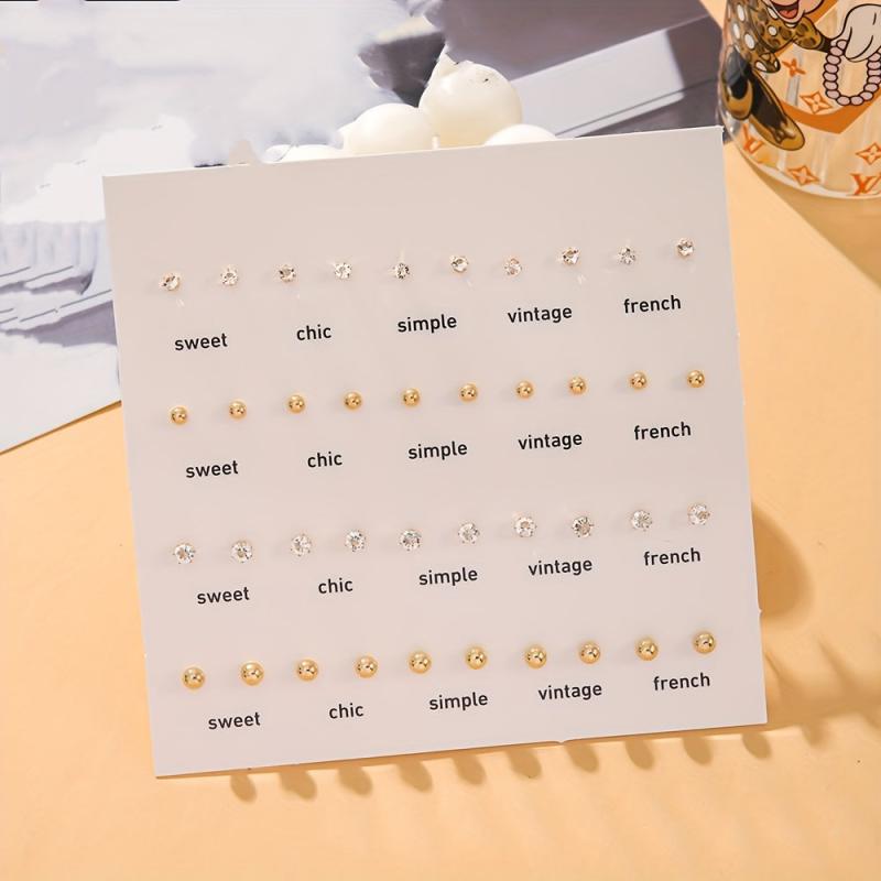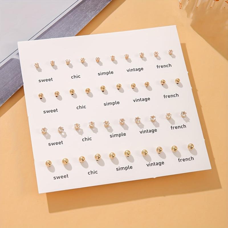 This set includes 40 mini stud earrings with inlaid synthetic zirconia, perfect for daily wear or gifting to friends. The earrings are made of CCB material and feature a round shape design.