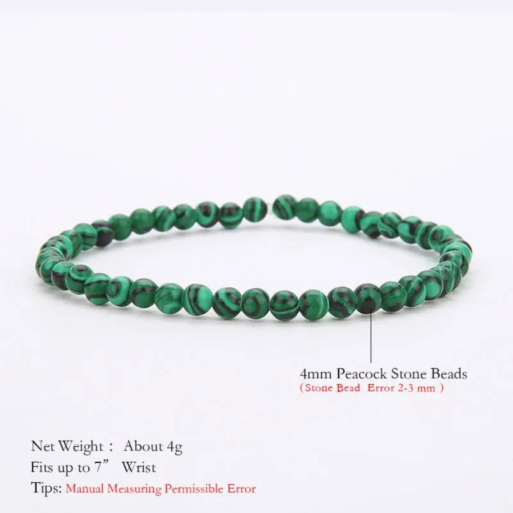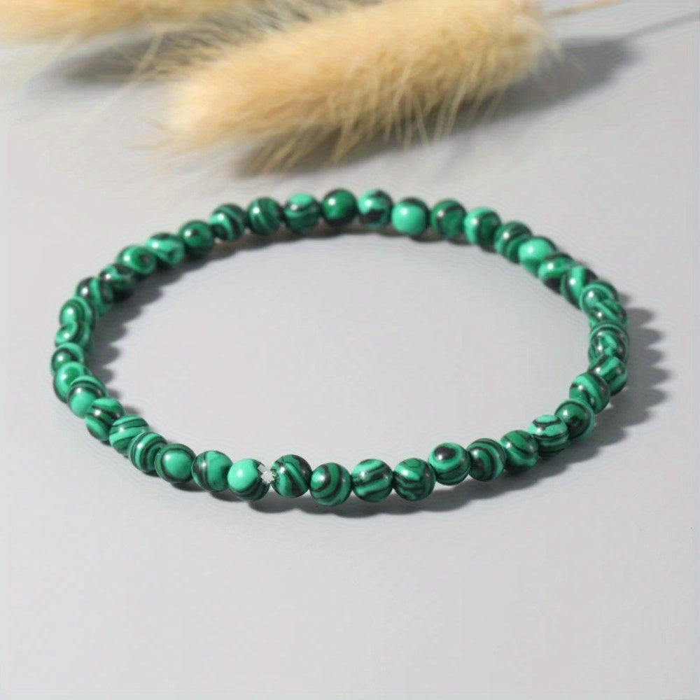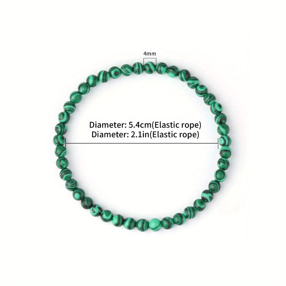 This bracelet features natural green malachite beads of 4mm size. Add a touch of elegance to your style with this beautiful accessory.