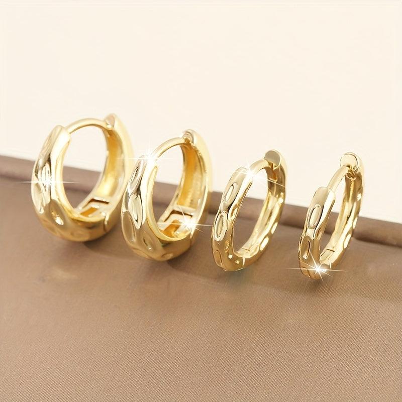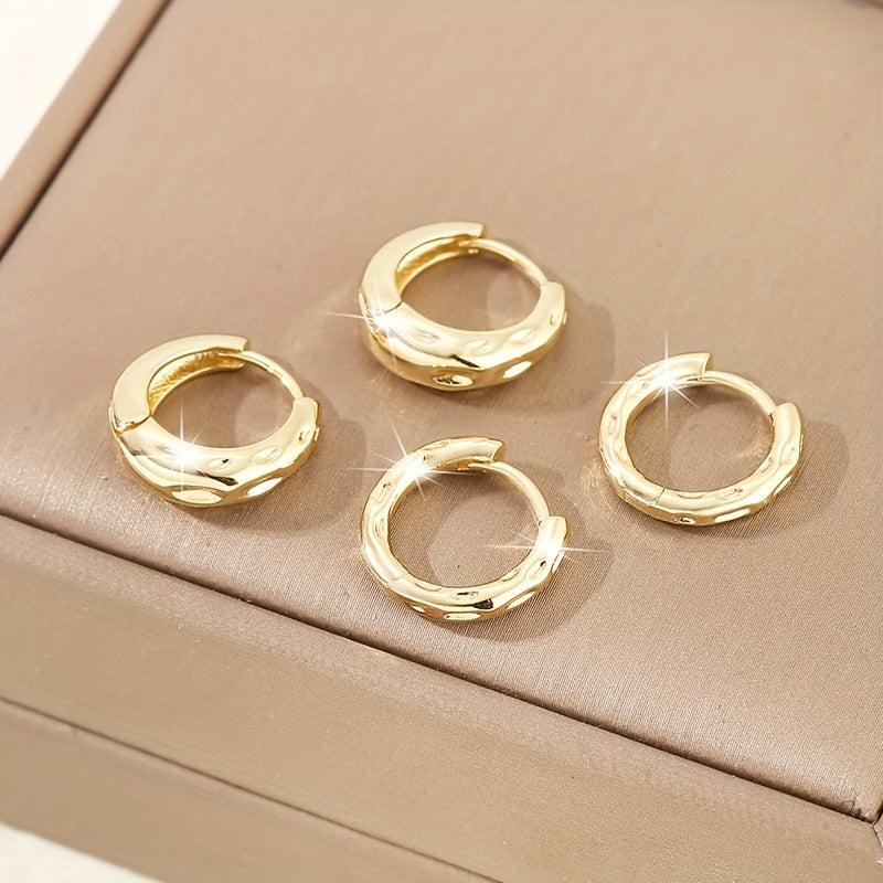 Adorn your ears with this set of 4 minimalist copper stud earrings featuring geometric and round shapes. The vintage design adds a touch of elegance to any outfit.