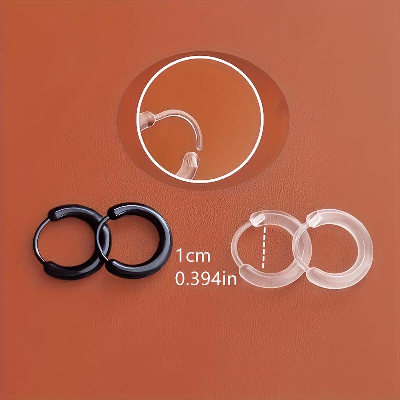 These versatile round hoop earrings are perfect for daily wear. Made of resin, they help prevent clogging in pierced ears. Transparent and invisible design.