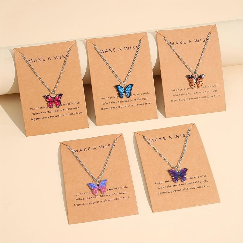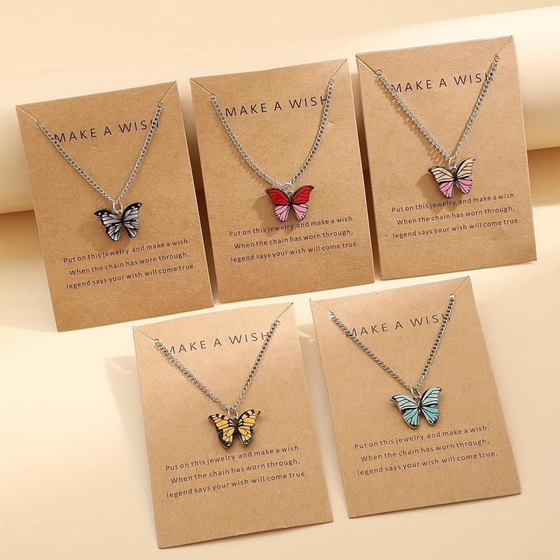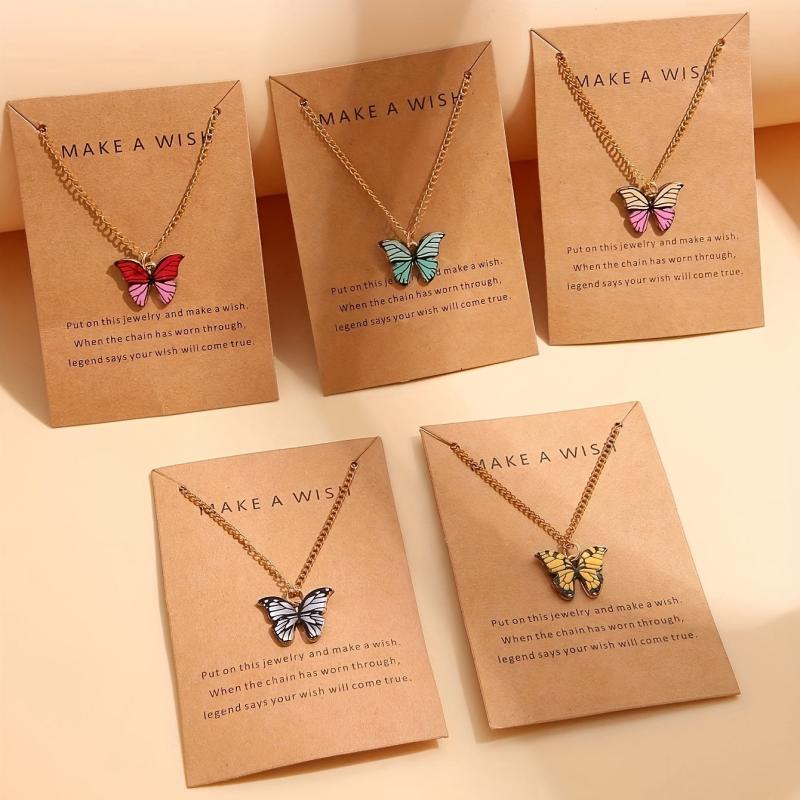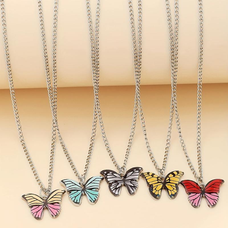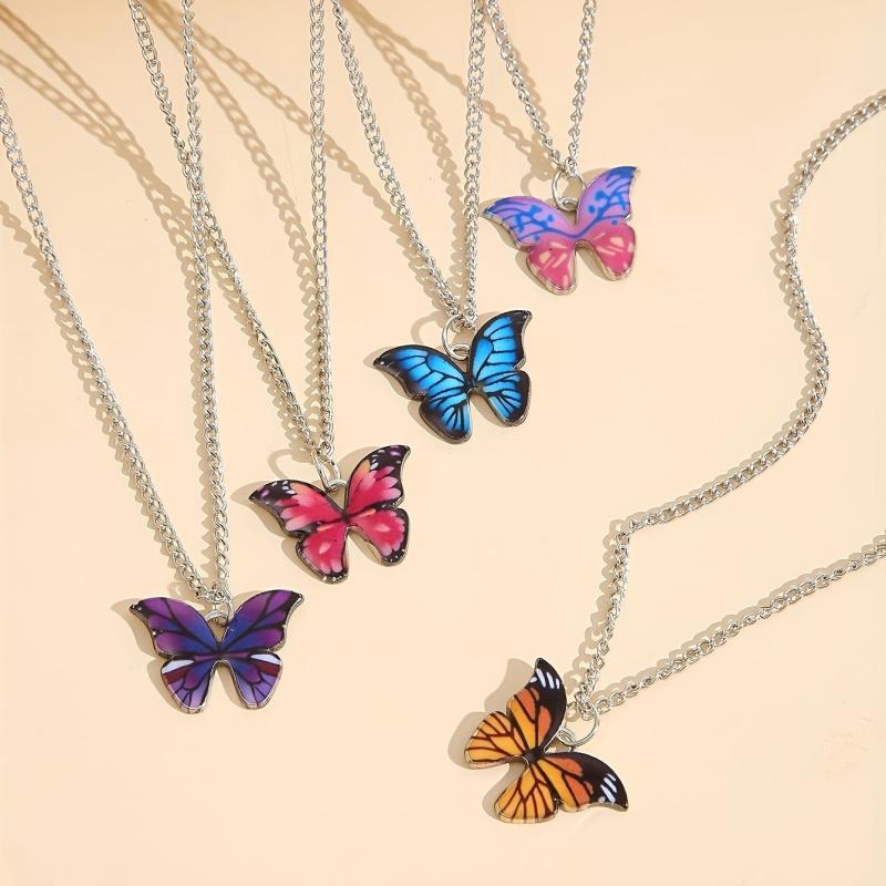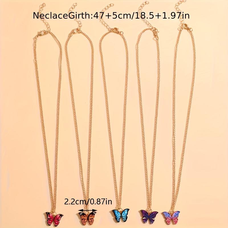 Add a touch of retro charm to your look with this 5-piece necklace set featuring minimalist colorful butterfly pendants. Perfect for vacations, parties, dates, and everyday wear. Also makes a versatile gift for loved ones.