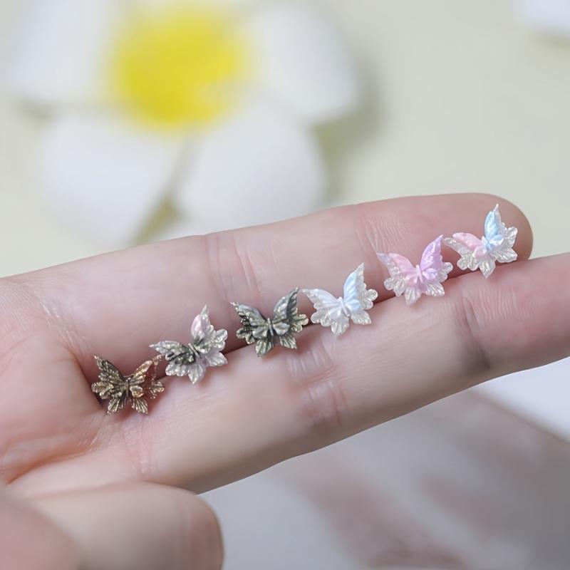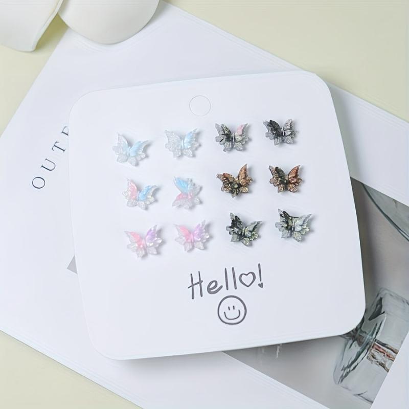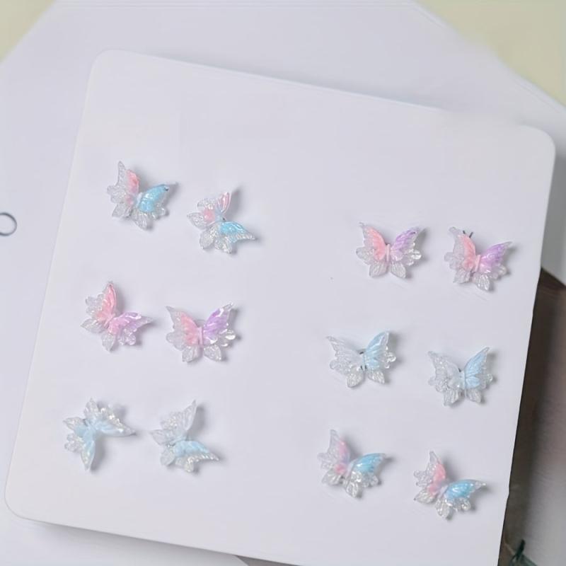 This set includes 6 pairs of glow in the dark resin butterfly earrings in 6 different colors. The earrings are made of 3D double layer soft plastic and are hypoallergenic. Perfect as a gift for women.