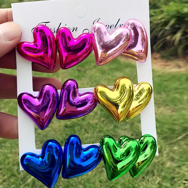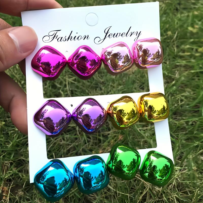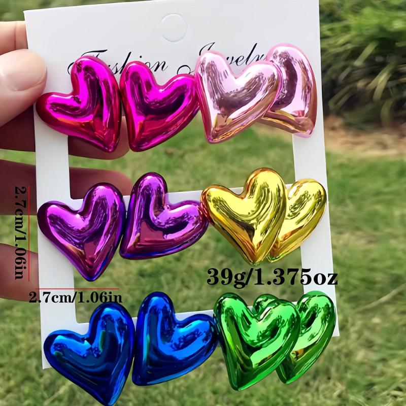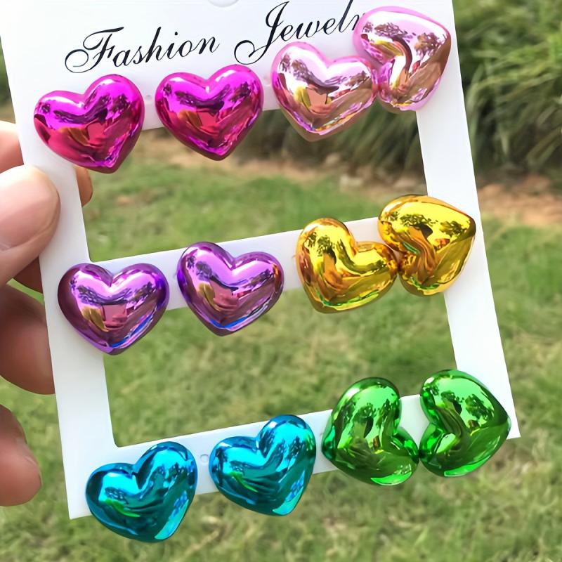 These stylish stud earrings are perfect for daily wear all year round. Made with stainless steel posts, they are versatile and durable, ensuring you can wear them with confidence. The set includes 3 pairs of heart-shaped earrings and 3 pairs of square-shaped earrings, each made from high-quality acrylic material.