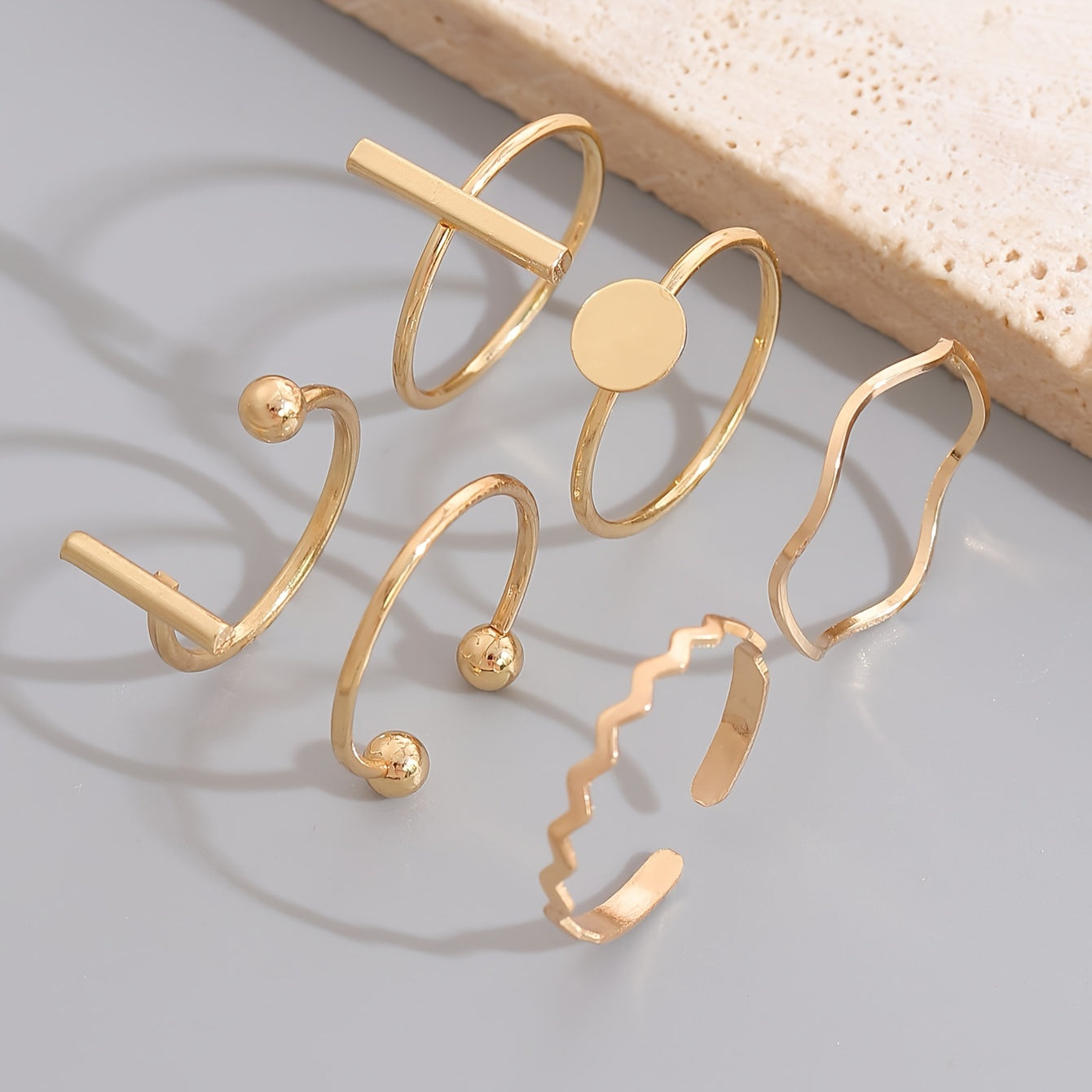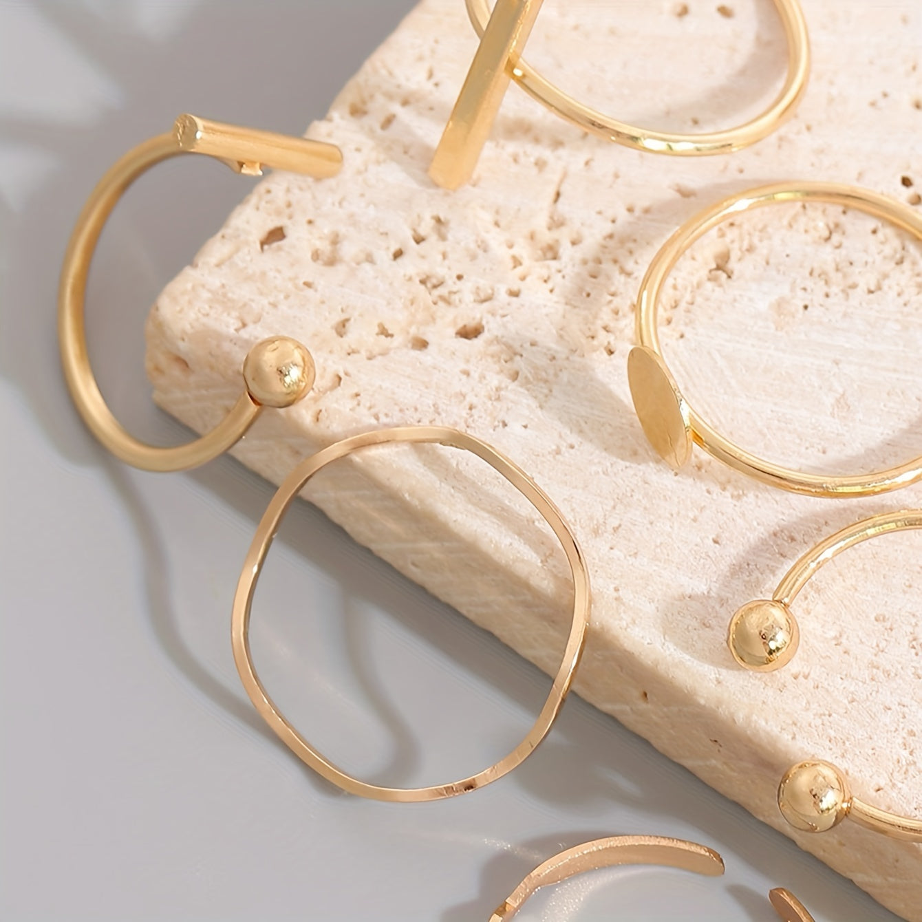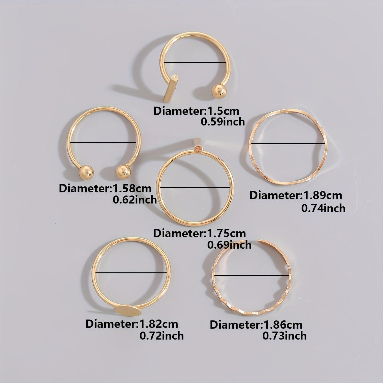 Enhance your style with this set of 6 vintage-inspired rings featuring a minimalist design in a stunning golden tone. Perfect for adding a touch of elegance to any outfit.