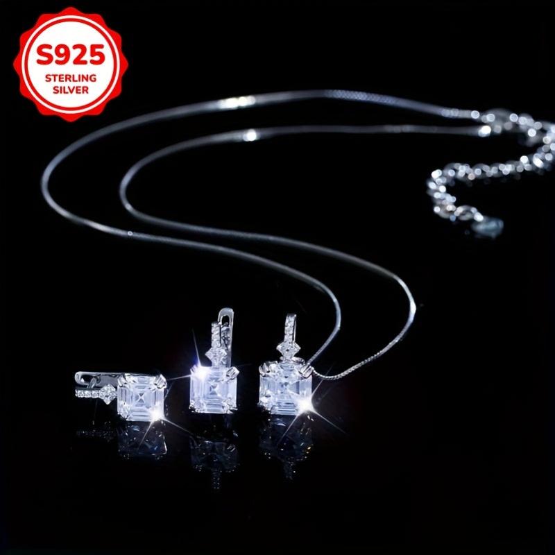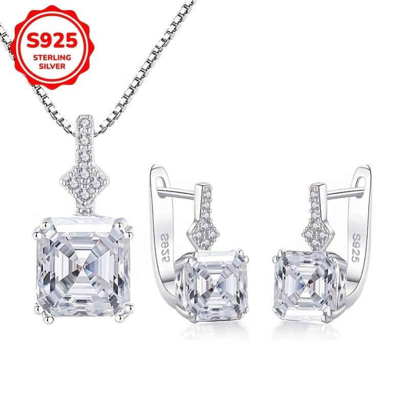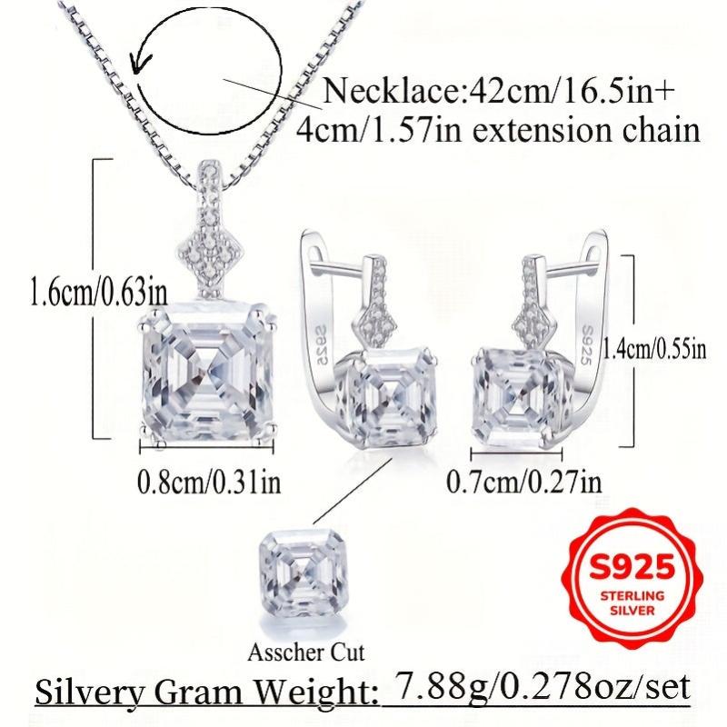Fashionable and Light Shining Cube-shaped Synthetic Zirconia Inlay Jewelry Set with a total weight of 7.88g (0.278oz).